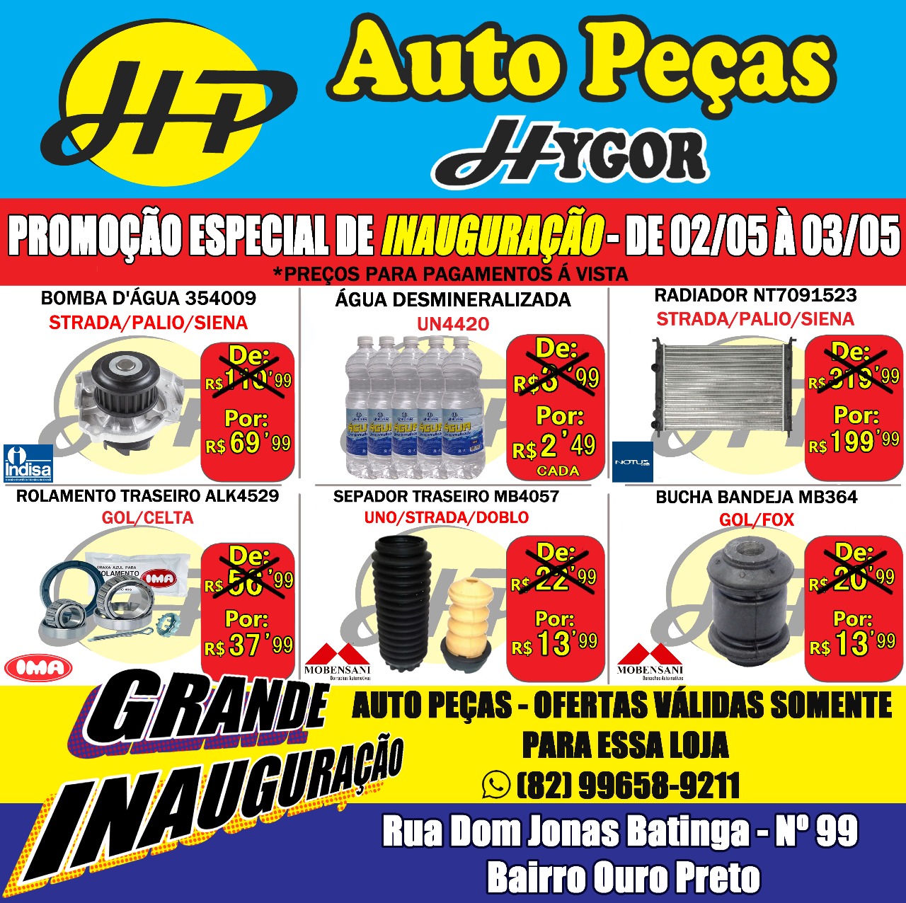 A Hygor Autopeças inaugurou nessa sexta-feira (02) sua quinta unidade reforçando seu compromisso de estar cada vez mais próxima da população de Arapiraca. A nova loja fica localizada na Rua Dom Jonas Batinga, nº 99, no bairro Ouro Preto, ampliando o alcance dos serviços da marca em mais uma região estratégica.