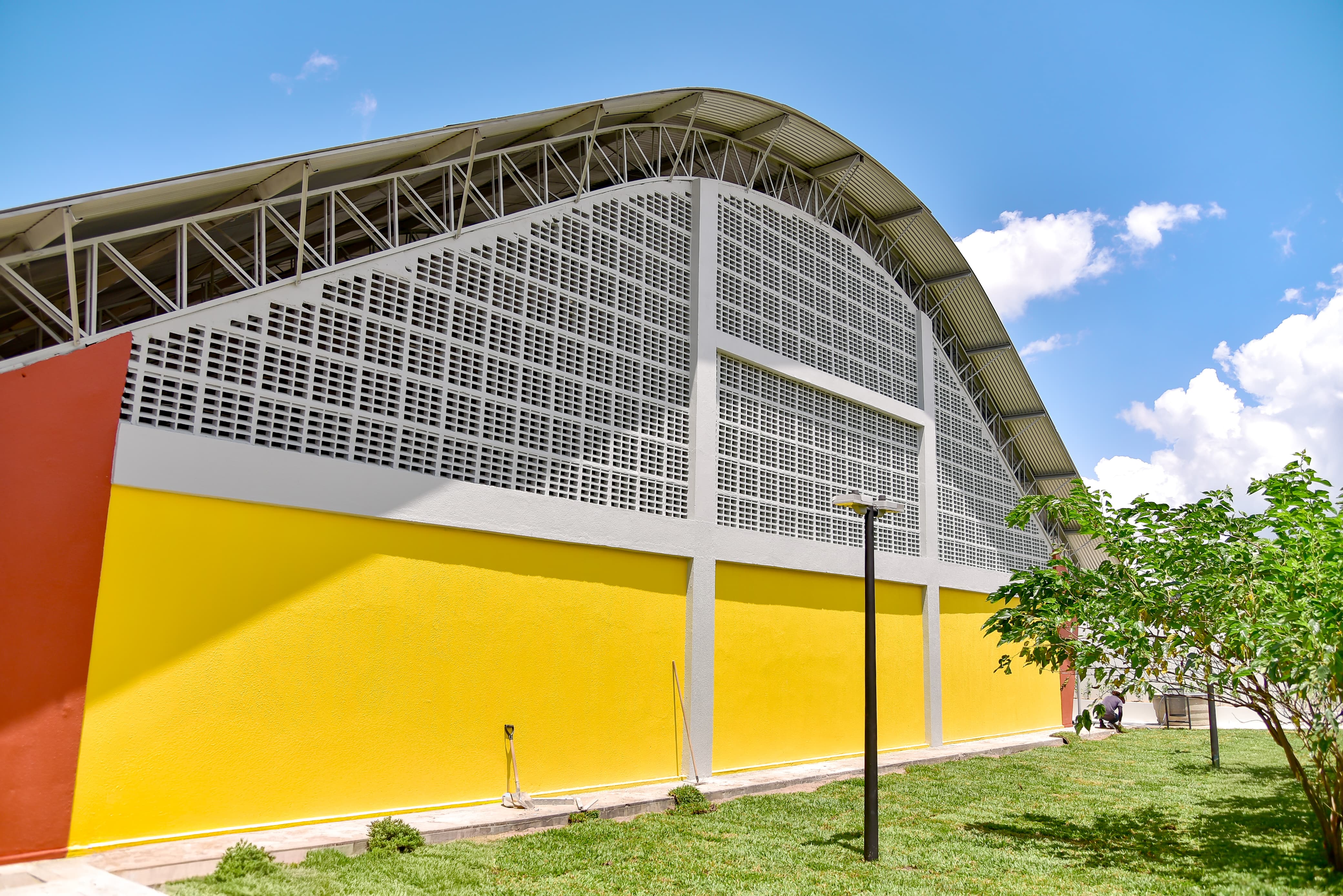 As obras compreenderam a recuperação integral da cobertura, garantindo segurança e conforto térmico ao público, além da pintura geral harmonizada com as cores da Escola Renilda Albuquerque, reforçando a identidade visual do complexo educacional e esportivo.