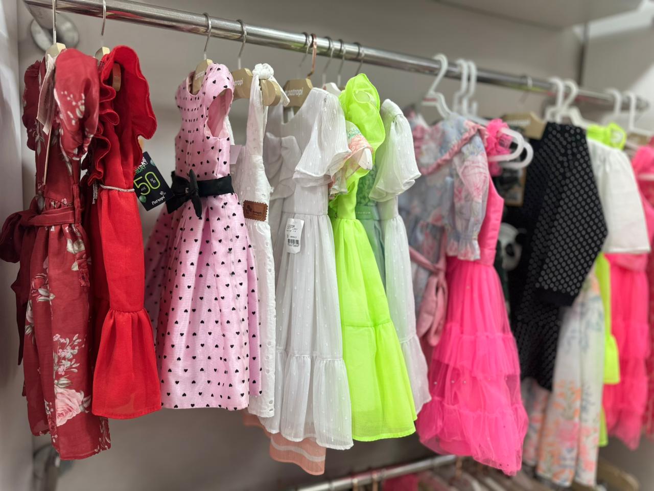 Logo na entrada das lojas, o público encontra uma promoção imperdível: na compra de três peças, o cliente paga apenas duas. A promoção vale para toda a loja — masculino, feminino, infantil e adulto — com opções que incluem vestidos, bermudas, shorts, peças esportivas, calças e muito mais.