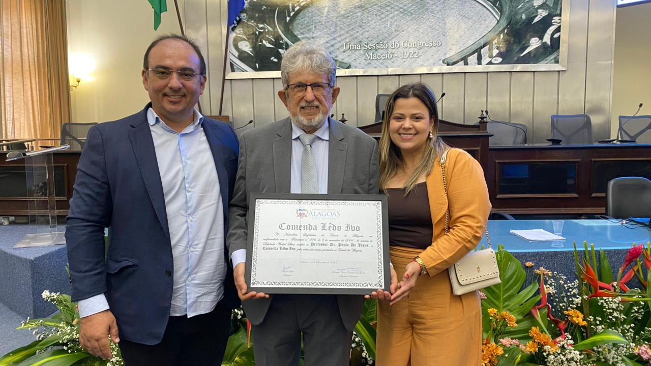 Prestigiando um momento de grande significado para Junqueiro, o prefeito Leandro Silva esteve presente, na Assembleia Legislativa de Alagoas, em Maceió, na Sessão Solene que concedeu a Comenda Lêdo Ivo ao Professor Doutor Paulo de Jesus.