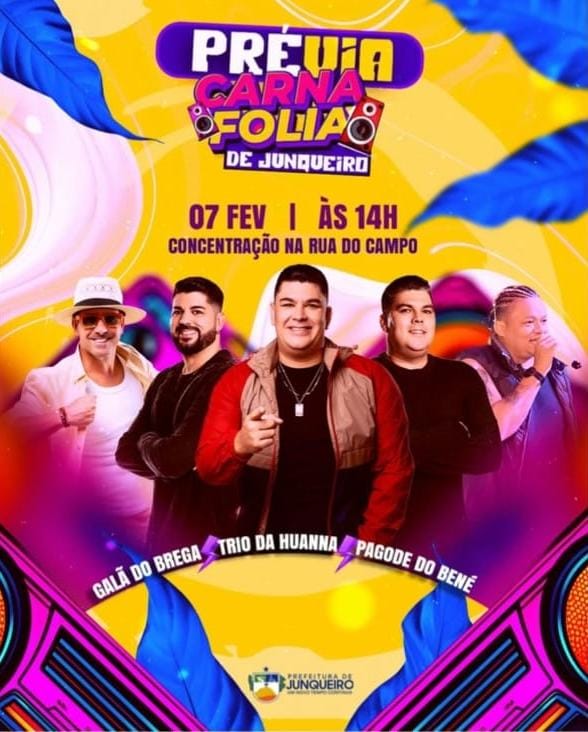 O Carnafolia, tradicional arrastão de prévia carnavalesca de Junqueiro, já tem data marcada e promete movimentar a cidade no próximo dia 7 de fevereiro. A festa começa a partir das 14h, com concentração na Rua do Campo, reunindo foliões de todas as idades em um clima de muita alegria e descontração.
