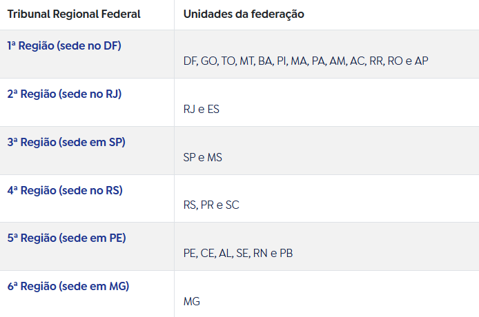 • acesse o site do TRF responsável pelo processo (links na tabela abaixo);