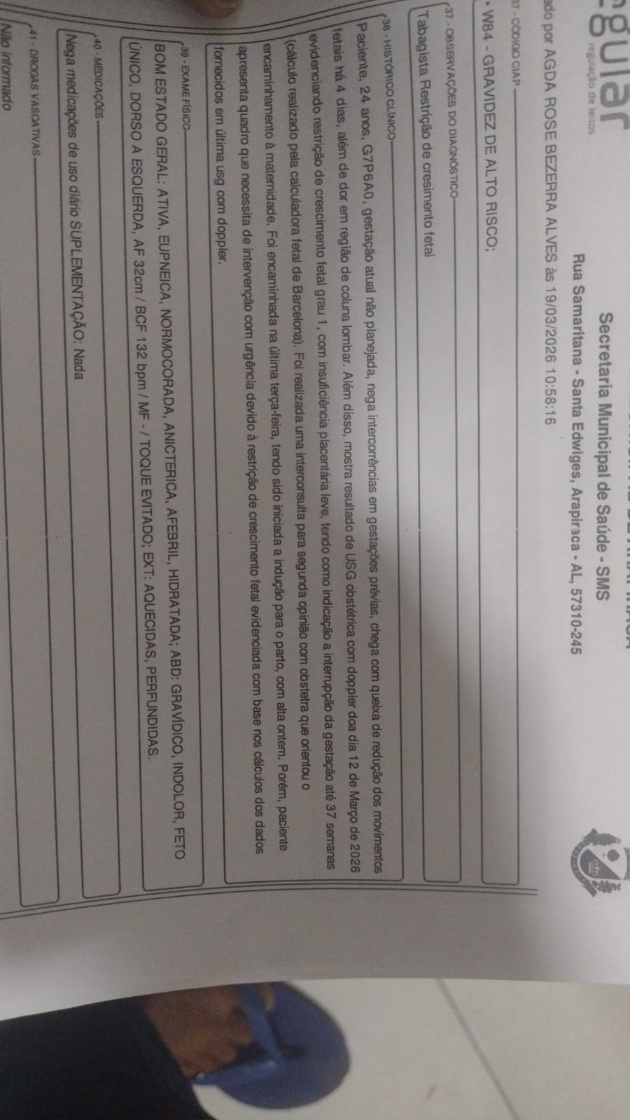 O homem afirma que possui documentos que comprovam a necessidade do procedimento e classifica o caso como urgente. “Já era para ela ter feito essa cesárea, mas mandam ela para casa”, relatou.
