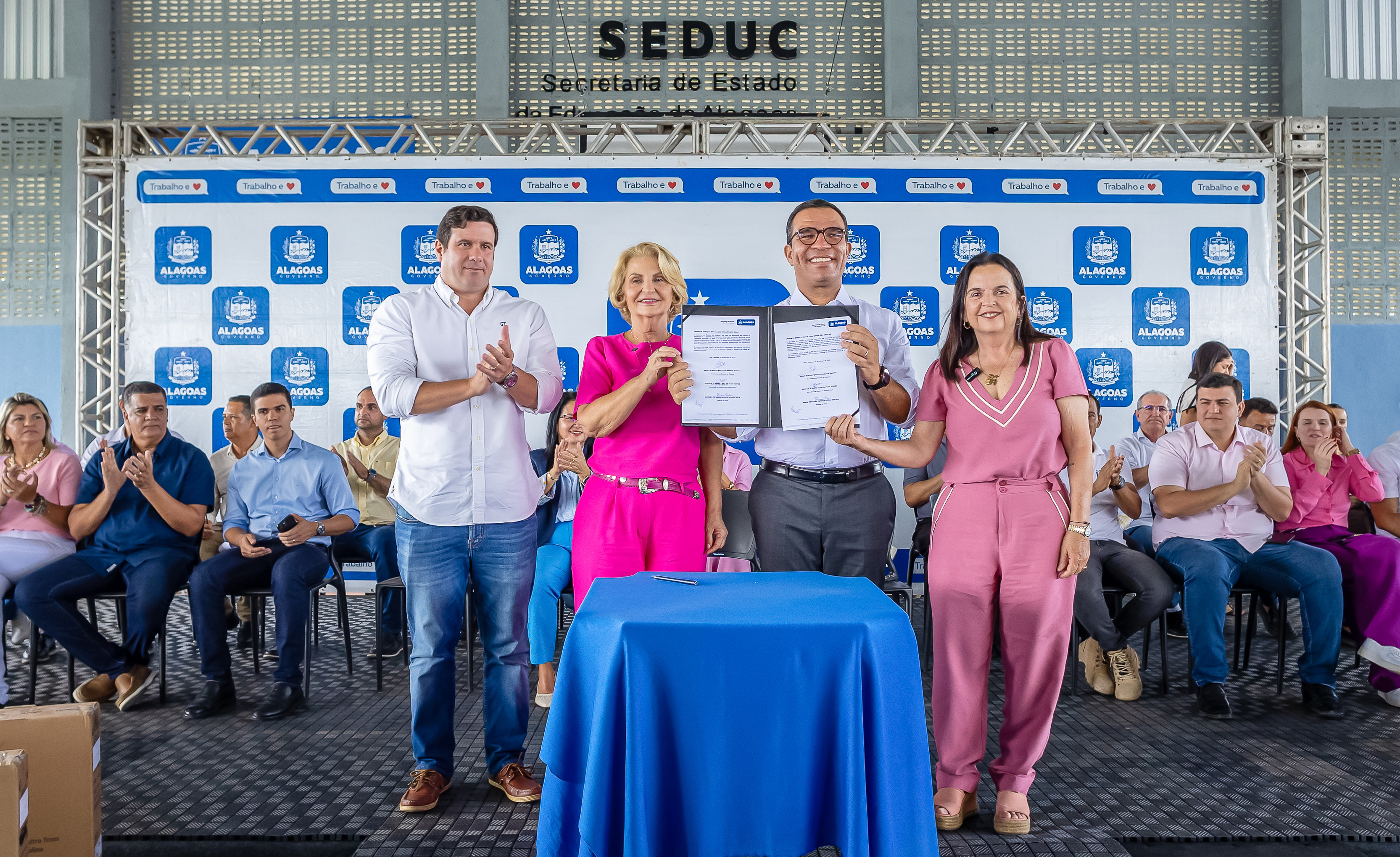 Durante a solenidade, Vitor Pereira acompanhou a prefeita de Pilar, Fátima Rezende, durante a assinatura do projeto de lei para doação de terreno para a construção. Com o lote doado, Pilar receberá a terceira unidade da creche Cria.
