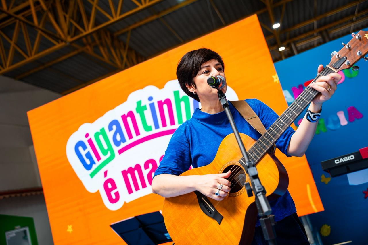Leitura e música marcam encontro de crianças do Gigantinhos Antares com Fernanda Takai