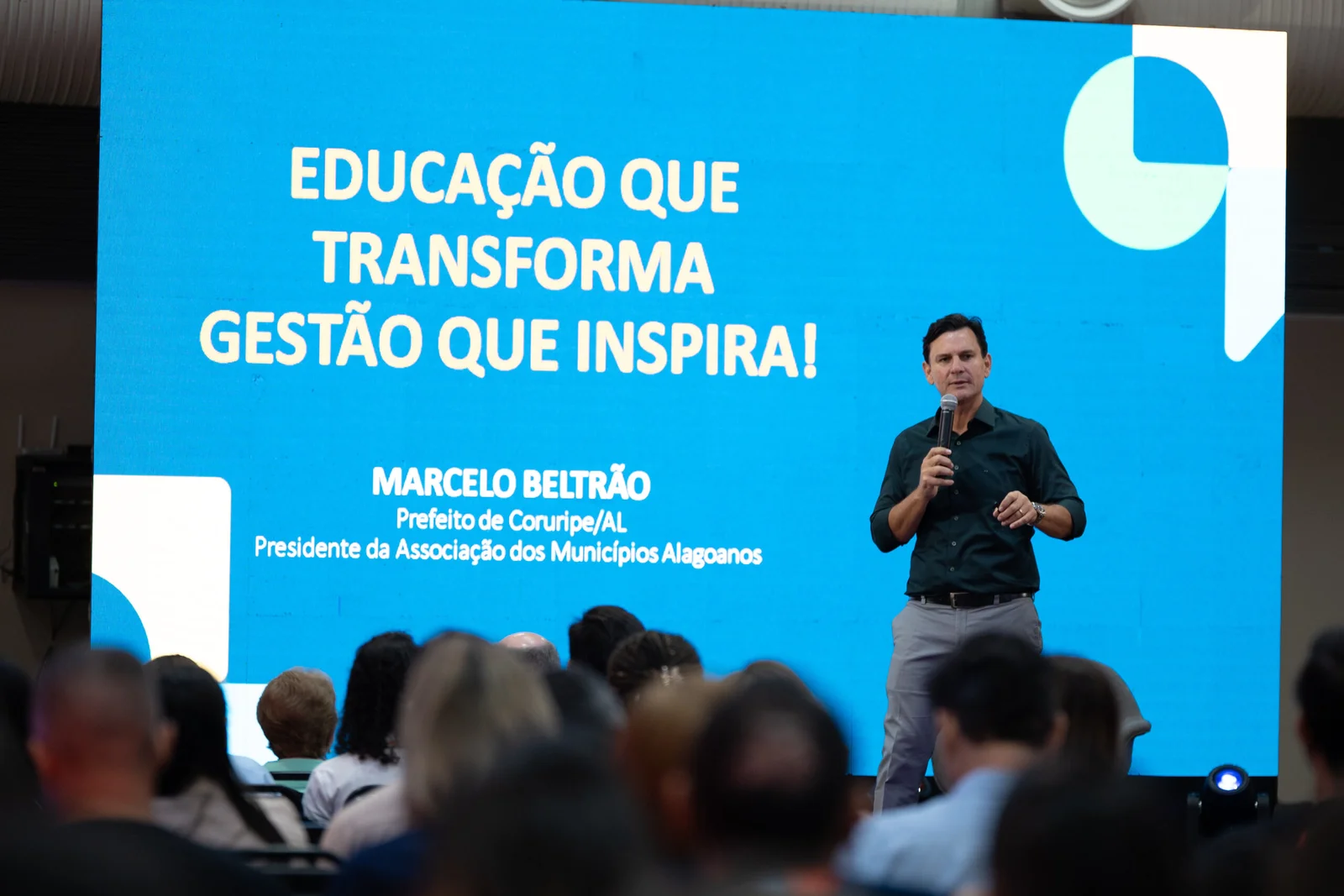 Mudar a realidade de uma geração começa por encarar os números e transformar estatísticas em estratégias reais de aprendizado. Com esse objetivo, o presidente da Associação dos Municípios Alagoanos (AMA), Marcelo Beltrão, abriu o Eixo Educação do Congresso dos Municípios Alagoanos nesta quinta-feira (22), durante a 13ª Feira dos Municípios Alagoanos — Congresso e Expo. Beltrão ministrou a palestra “Avaliações externas (Inep/MEC) e internas municipais como instrumento de gestão e monitoramento contínuo da aprendizagem”, que contou com a participação do reitor da Universidade Federal de Alagoas (Ufal), Josealdo Tonholo.