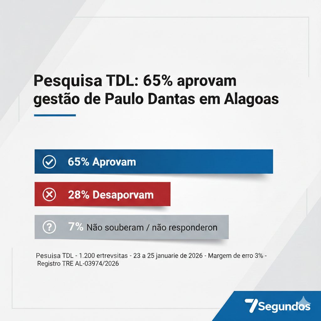 Uma pesquisa de opinião pública divulgada recentemente mostra que a administração do governador Paulo Dantas é aprovada pela maioria da população de Alagoas. Segundo o levantamento, 65% dos entrevistados avaliam positivamente a gestão estadual.