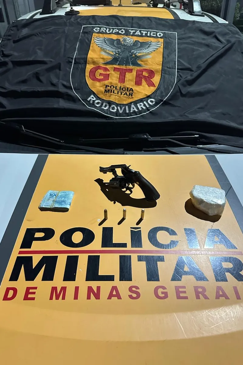 O veículo foi interceptado em Patos de Minas por equipes da Polícia Militar Rodoviária. Durante a abordagem, os policiais encontraram um tablete de substância análoga à cocaína, um revólver calibre .38 com três munições intactas e R$ 3 mil em dinheiro.