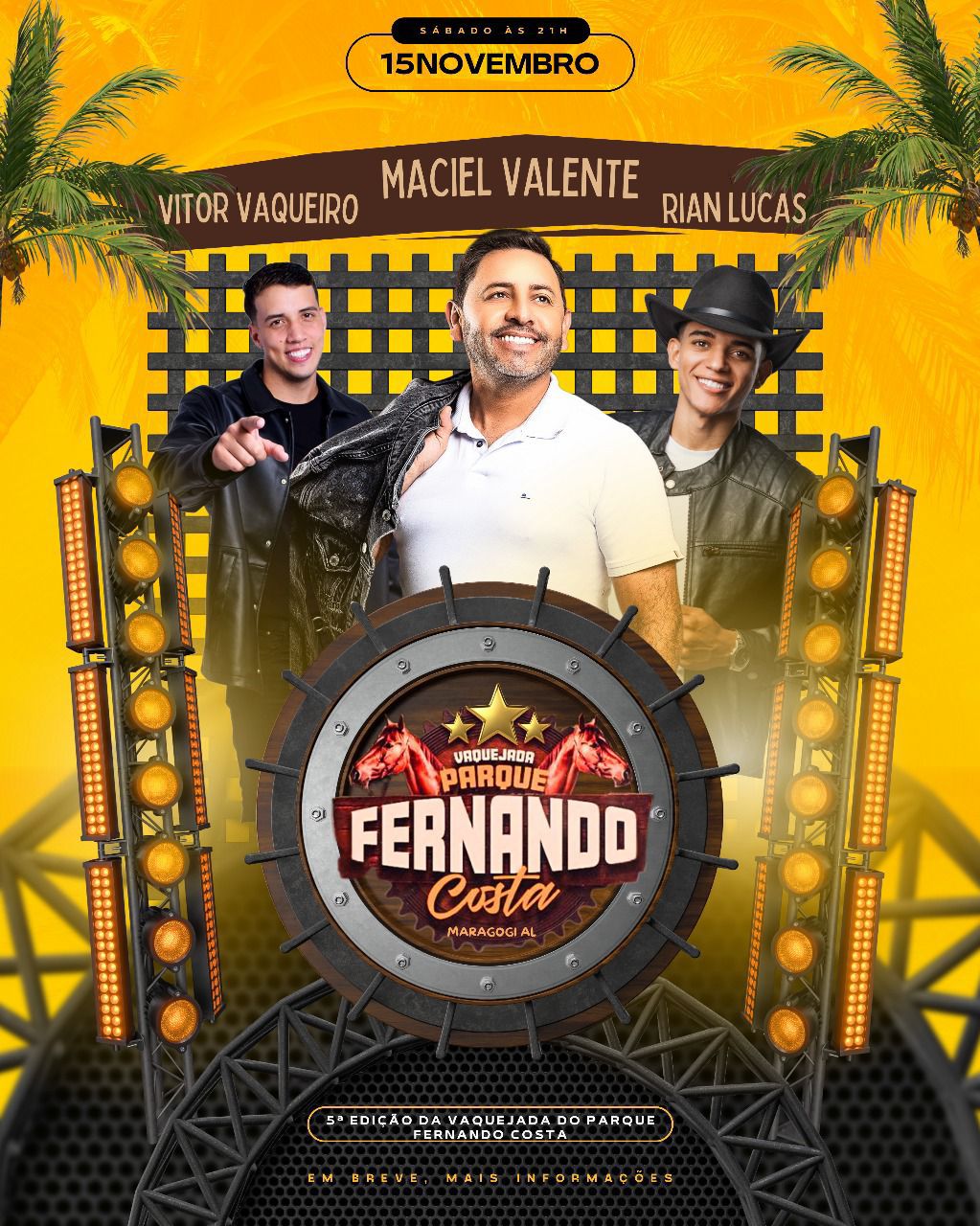 Além das grandes vaquejadas, o Parque Fernando Costa também será palco de grandiosos shows. As apresentações estão agendadas para o dia 15 de novembro, feriado nacional, a partir das 22h com as apresentações de Maciel Valente, Rian Lucas e Vitor Vaqueiro. Os ingressos antecipados para os shows custam R$ 30,00 pista e R$ 50,00 lounge.