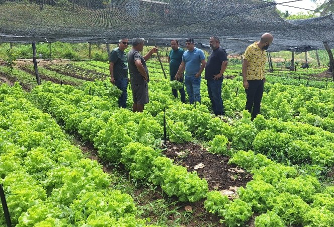 Os agricultores Otacílio e Luzia Luna produzem alface, coentro, salsa, alho-poró, cebolinha, pimentão, tomate cereja, manjericão e alecrim, além de feijão de corda e banana. Só de alface, por exemplo, eles têm mil e quinhentos pés plantados. “Temos ainda 200 molhos de coentro em ponto de colheita, nesta semana, e outros 300 para a próxima”, comentou Otacílio Luna. A propriedade do casal recebeu, nesta quarta-feira (5), a visita do Pró-reitor de Extensão do Instituto Federal de Alagoas, Gilberto Gouveia Neto, que acompanhou os avanços da extensão em Maragogi.