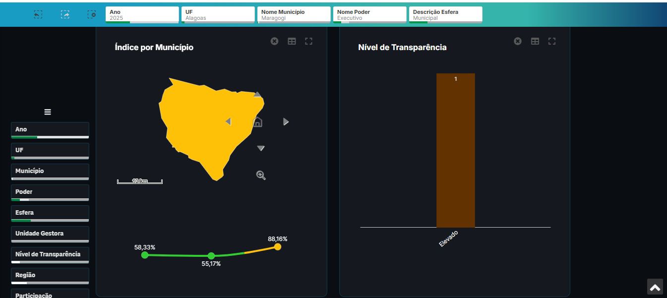 A Prefeitura de Maragogi alcançou um marco histórico na gestão pública ao conquistar o 3º lugar entre os 102 municípios de Alagoas no Programa Nacional de Transparência Pública (PNTP), atingindo 88,16% de aprovação em 2025. O resultado representa um salto significativo em relação a 2024, quando o município registrou 55,17% no mesmo indicador. A evolução demonstra o compromisso da administração municipal com a modernização dos processos, o aprimoramento das ferramentas de informação e a ampliação da acessibilidade aos dados públicos.