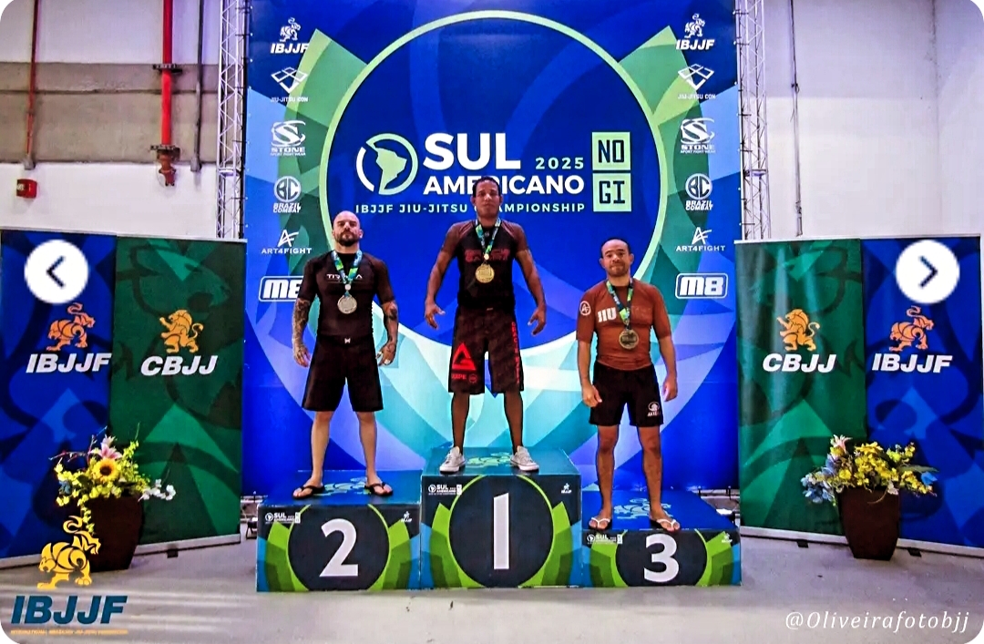 Ele conquistou o título de campeão Sul-Americano da IBJJF sem kimono, em competição realizada na Barra da Tijuca, no Rio de Janeiro