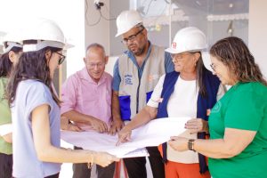 Na manhã desta quarta-feira (5), a prefeita Tia Júlia, acompanhada dos secretários municipais de Infraestrutura Thiago Tavares e de Educação Renilda Pereira, além da secretária – adjunta de Infraestrutura Isabel Basílio, realizou uma visita técnica às obras de construção da nova sede da Escola Municipal Vereador Elói Barbosa, localizada na comunidade rural de Caraíbas Tortas.