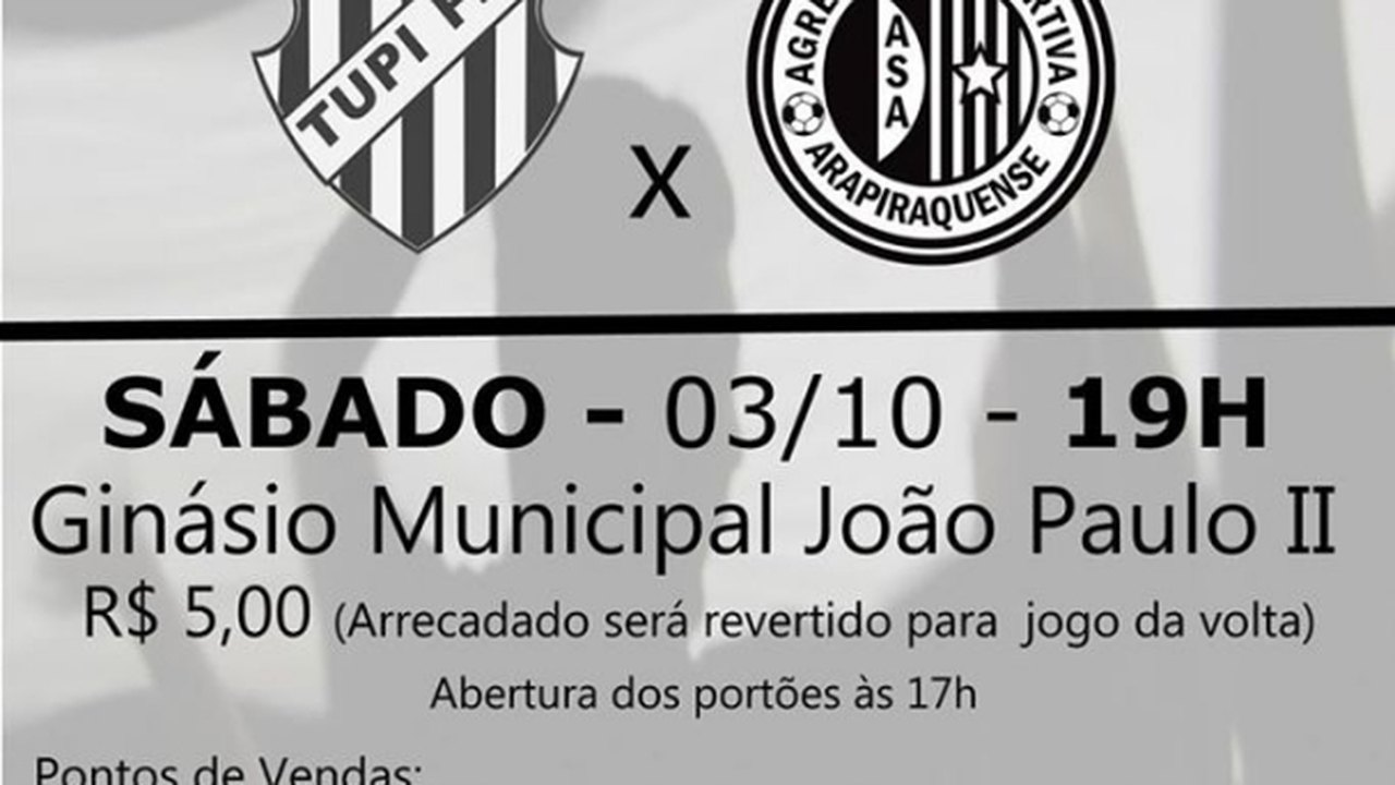 Torcedores que não puderem ir até a cidade de Juiz de Fora-MG, assistirem ASA e Tupi, jogo de ida pelas quartas-de-final da Série C do Campeonato Brasileiro, poderão acompanhar a partida no Ginásio João Paulo II no próximo sábado (03). Um telão será instalado, e transmitirá a partida ao vivo.