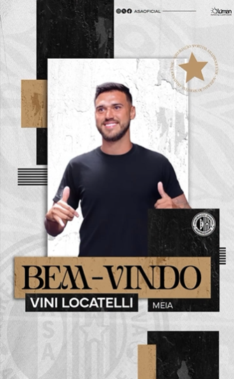 O outro reforço anunciado nesta quinta-feira é o meia Vini Locatelli, considerado um jogador de muita qualidade para reforçar e comandar o meio-campo alvinegro.