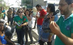 A reunião teve de ser realizada em praça pública, pois a direção da Escola Municipal Maria Júlia não liberou o espaço interno da unidade educacional solicitado através de ofício emitido pelo Sindicato dos Servidores dos Trabalhadores da Educação de Alagoas (Sinteal).