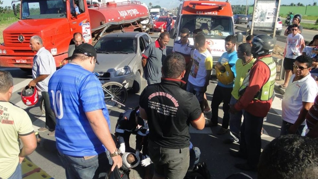 Alisson Barbosa Vasconcelos colidiu na traseira da moto CG150 de cor vermelha, quando o dono identificado como Edval Laurentino parou na faixa de pedestre.