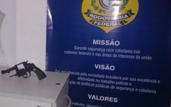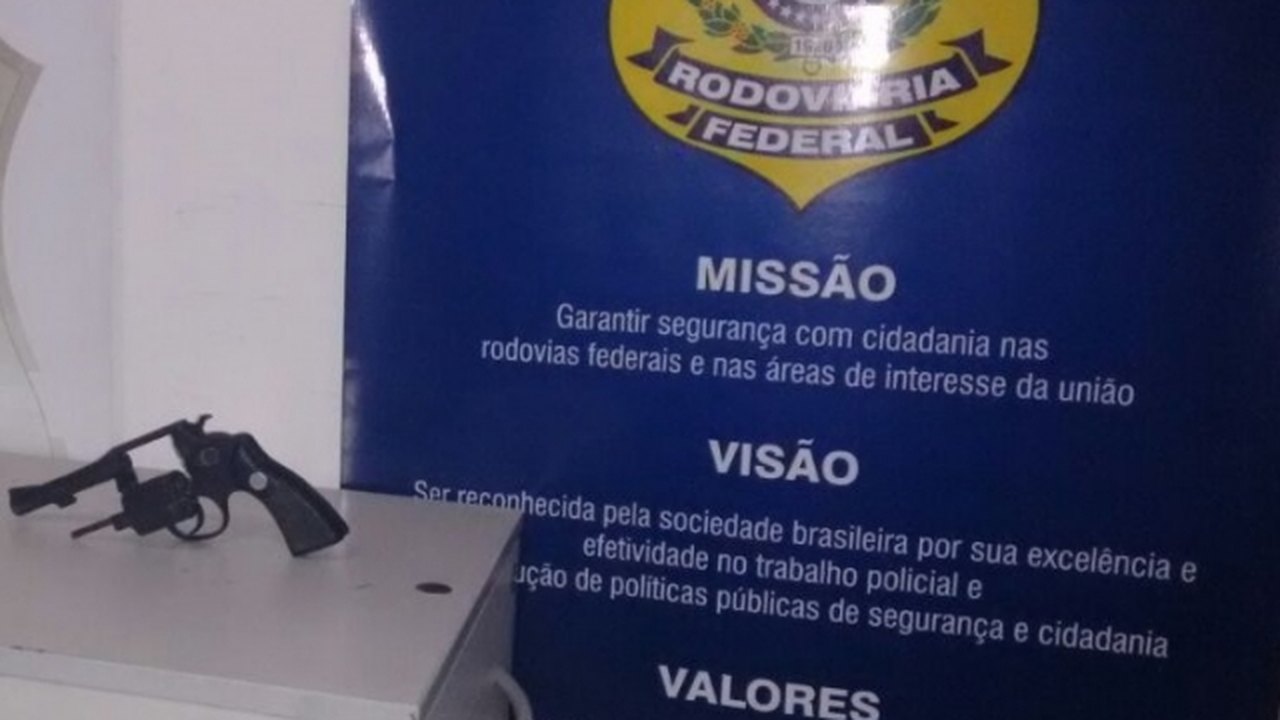 Durante a revista pessoal, os policiais rodoviários federais encontraram na cintura do condutor um revólver municiado com seis munições.
