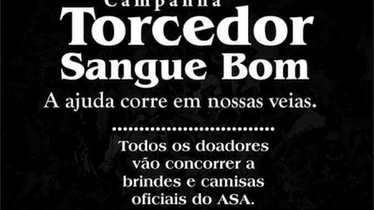 Com o objetivo de aumentar o número de bolsas de sangue no estoque do Hemoar, a torcida Mancha Negra em parceria com o ASA e o Arapiraca Garden Shopping realizam nesta quinta-feira (23) mais uma campanha, desta vez o foco é a doação de sangue. Para incentivar a doação, jogadores do elenco principal estarão participando do evento, além do sorteio de vários brindes.