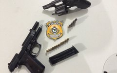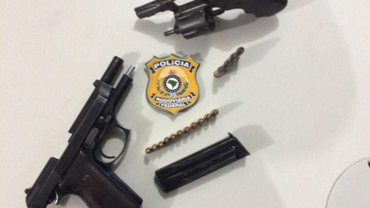 Na sexta-feira (24), por volta das 22h, um homem, de 26 anos, foi preso e um adolescente, de 16, foi apreendido na BR 101, em Pilar/AL, por porte ilegal de arma de fogo. Eles estavam trafegando em um VW Polo quando foram abordados pela PRF. Durante a vistoria do automóvel e revista dos ocupantes, foram encontrados uma pistola e um revólver cal. 38. As armas estavam municiadas.
