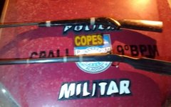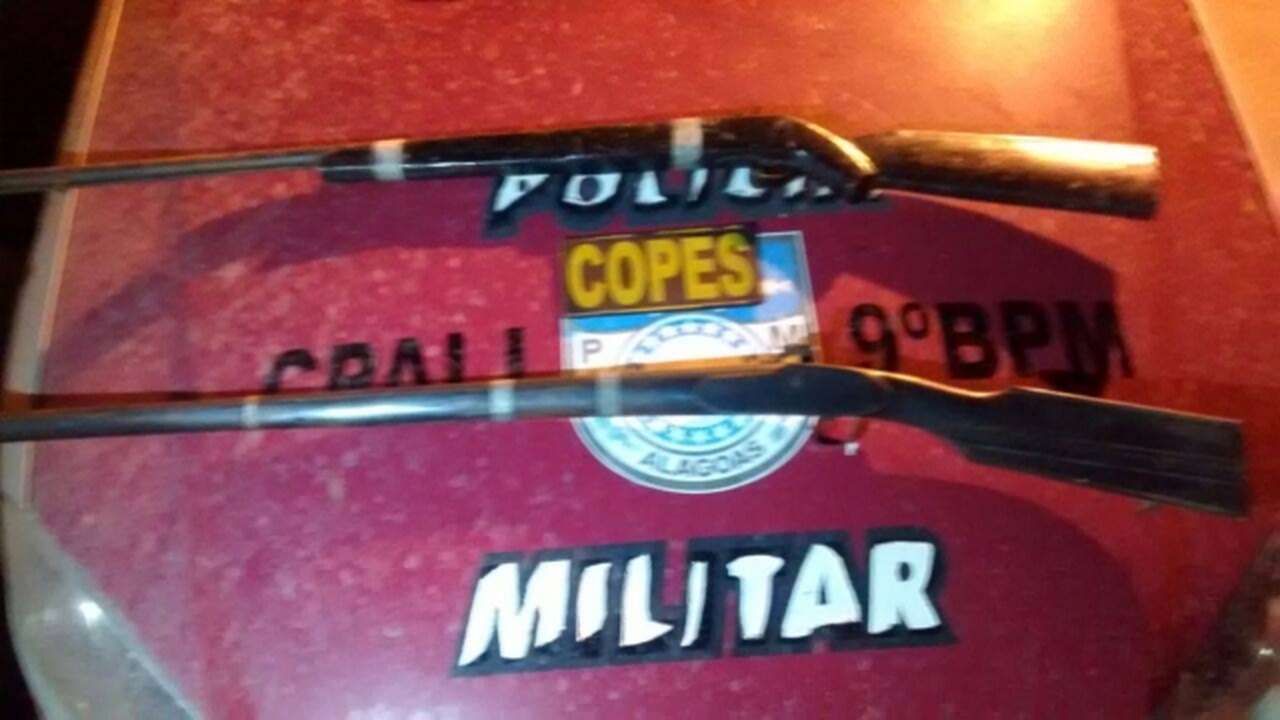 O assaltante estava baleado e com duas espingardas de fabricação caseira, ainda municiadas e uma munição calibre 38.