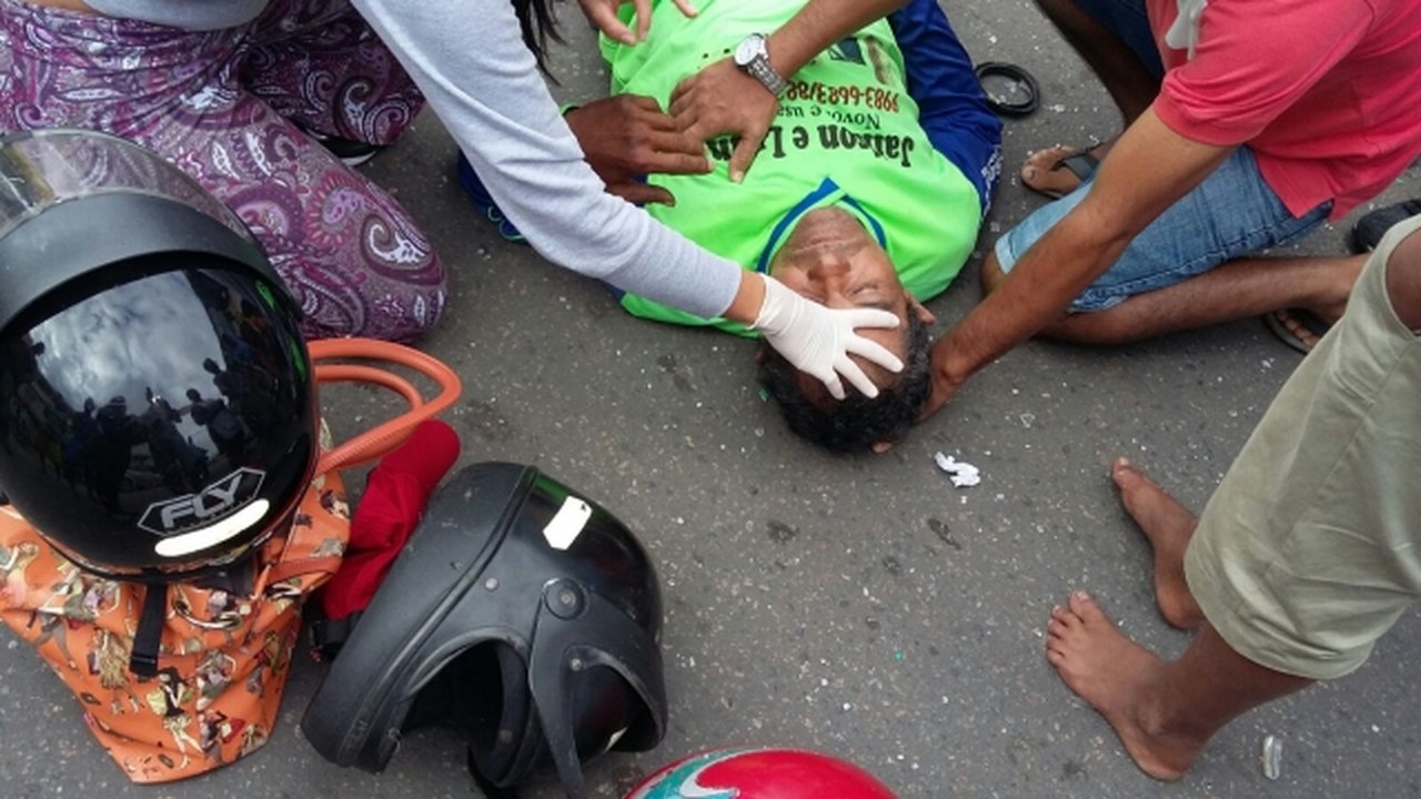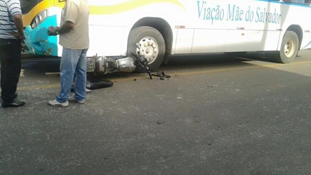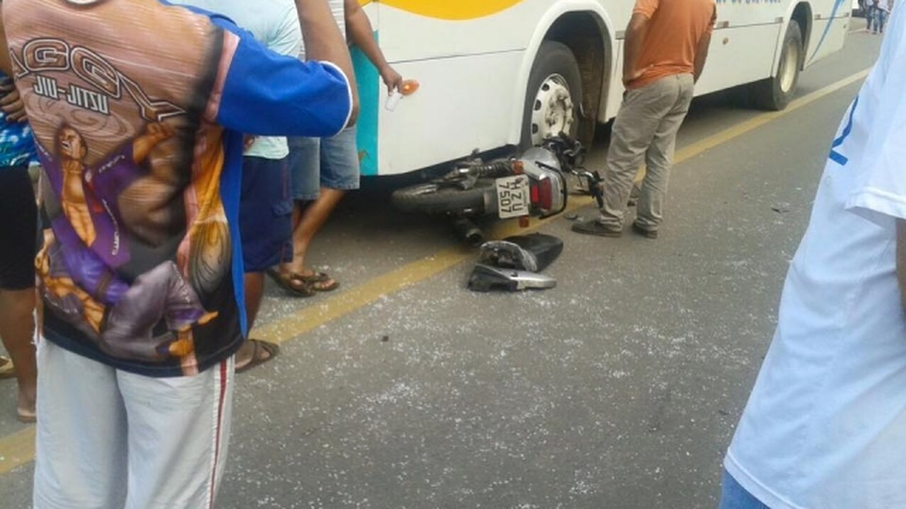 Ele, que na hora estava com um passageiro tentou ultrapassar o ônibus e acabou colidindo na lateral do veículo maior, caindo na via.