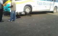 Mais uma colisão foi registrada na rua Delmiro Gouveia, no centro de Arapiraca. Desta vez, uma motocicleta colidiu contra um ônibus da Viação Mãe do Salvador, depois de tentar realizar uma ultrapassagem.