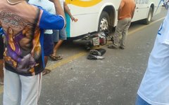 Colisão entre ônibus e motocicleta é registrada no centro de Arapiraca