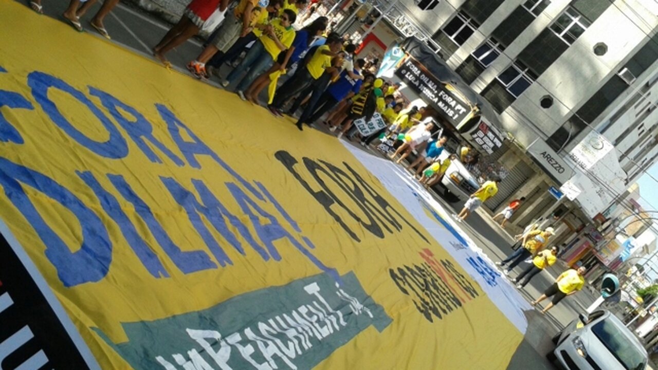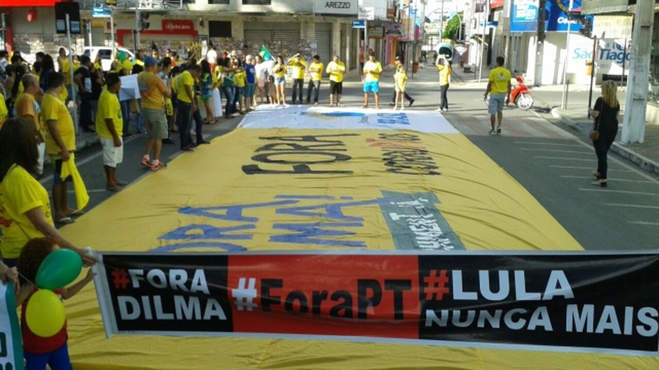 Milhares de brasileiros indignados pela gestão da presidente Dilma Rousseff foram às ruas na manhã e na tarde deste domingo (15), em mais de 150 cidades do país, para pedir a saída da presidente e do PT do governo do Brasil. Em Alagoas, o protesto foi organizado pelo Movimento Brasil Livre (MBL) e reuniu centenas de pessoas nas duas grandes cidades, Maceió e Arapiraca.