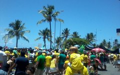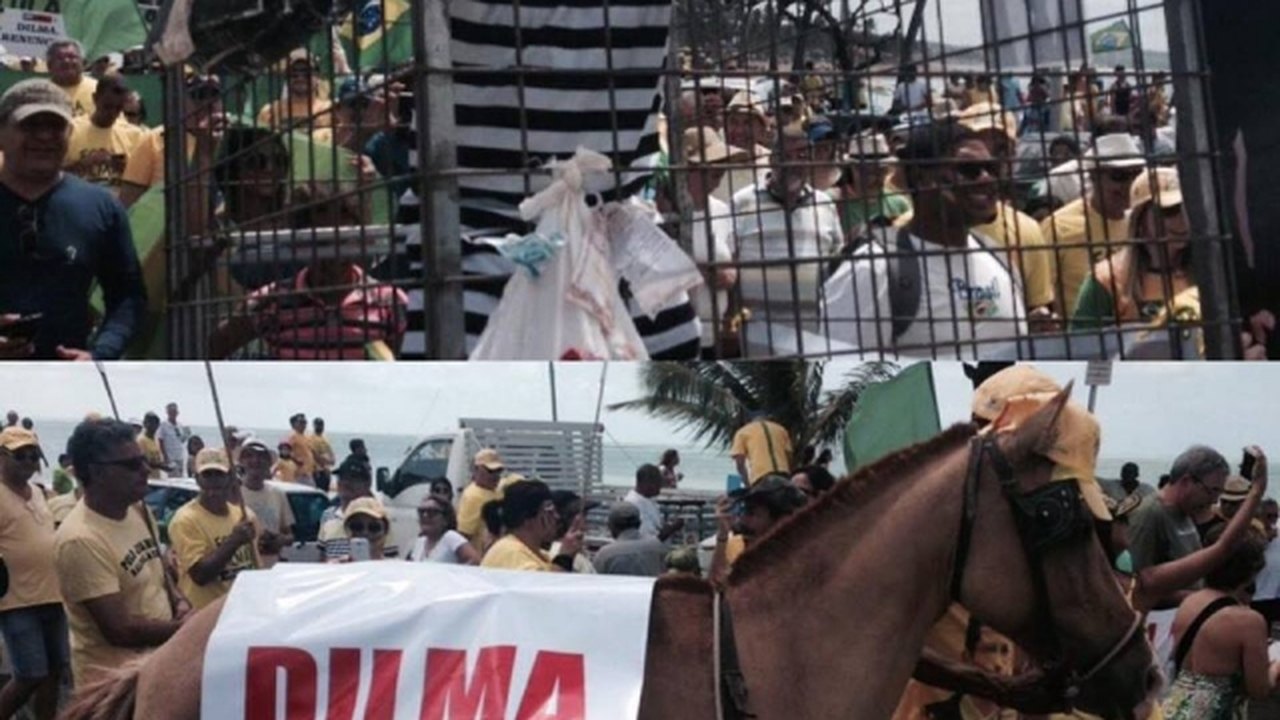 Utilizando camisas na cor do Brasil, faixas, cartazes, bandeiras, apitos e ao som de trio elétrico, os manifestantes expressavam indignação com as atuais medidas do governo federal. Um ato que chamou bastante atenção no protesto na orla alagoana foi a presença de uma carroça de burro. A burra, guiada por um carroceiro contratado pelos organizadores do MBL, estava representando a presidente Dilma Rousseff e era transportado o ex-presidente Lula.