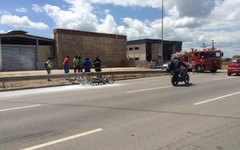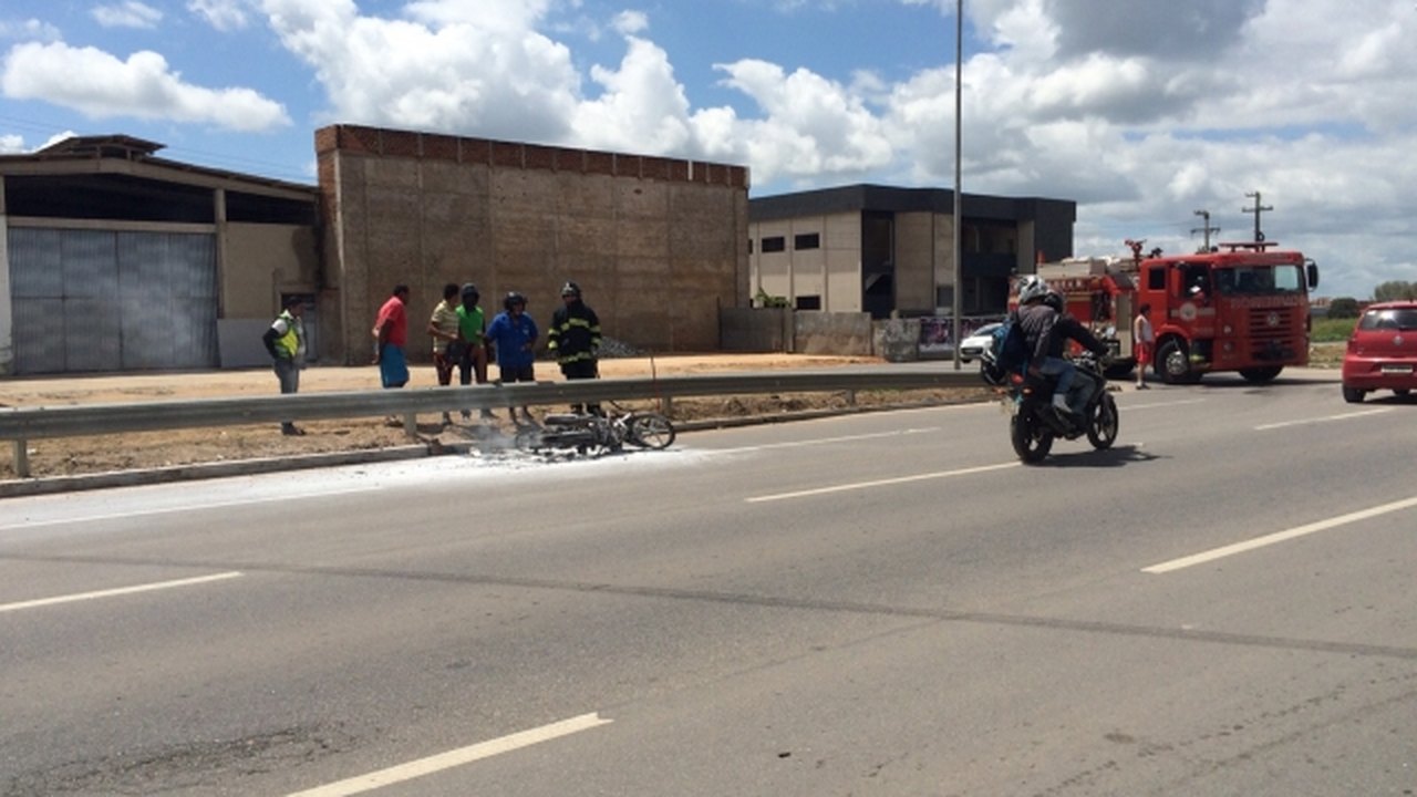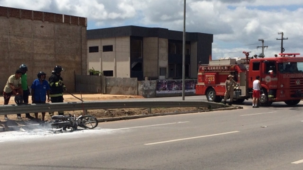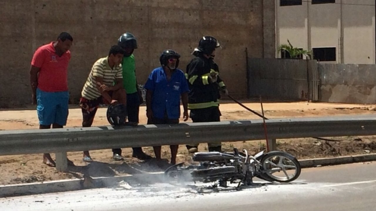 De acordo com informações colhidas no local do ocorrido, a moto começou a pegar fogo e o condutor foi alertado por outros motoristas. Ao perceber que a moto estava pegando fogo, o condutor desceu da moto.
