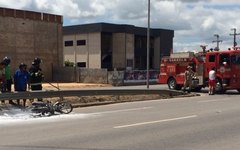 Uma motocicleta de 50 cilindradas, mais conhecida como "cinquentinha" pegou fogo na tarde deste domingo (23), na Avenida José Alexandre, no bairro Santa Esmeralda, em Arapiraca.
