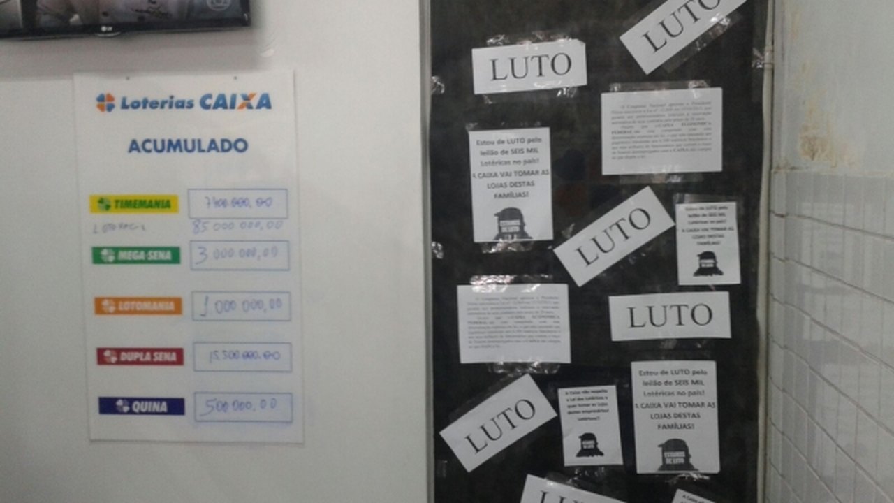 Na manhã desta quinta-feira (03) as casas lotéricas de Arapiraca amanheceram com cartazes e faixas escritos com a palavra “Luto”, fixados nos caixas e nas paredes dos prédios, em protesto a uma decisão da Caixa Econômica Federal (CEF) que está realizando o processo licitatório para a concessão de lotéricas. O protesto acontece simultaneamente em todo o país.