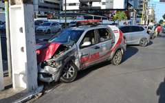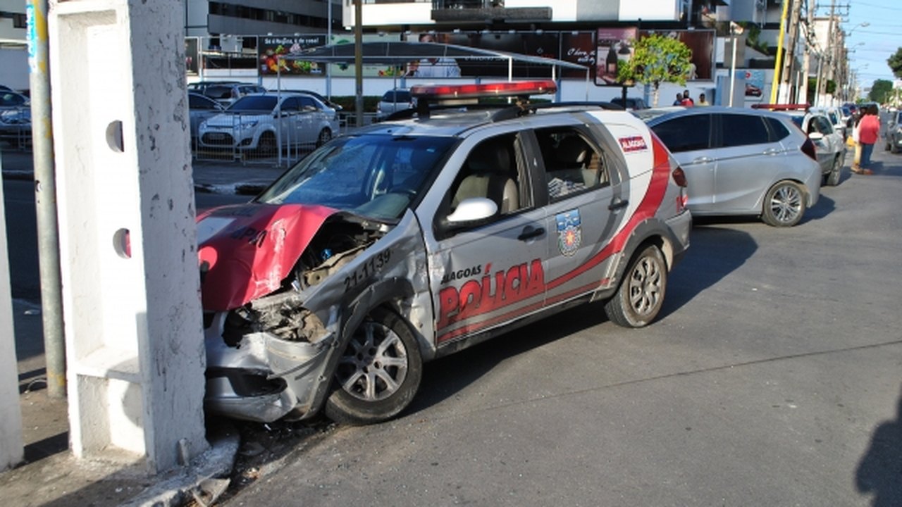 Quatro pessoas ficaram feridas na tarde deste domingo (20) após uma viatura policial furar o sinal vermelho e colidir frontalmente com um carro de passeio na Avenida Deputado José Lages, no bairro da Ponta Verde, em Maceió.