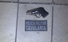 Um jovem de 19 anos, identificado como Gean de Barros Santos, andava de bicicleta quando foi flagrado com um simulacro durante abordagem da cavalaria da Polícia Militar na Rua Maria do Amparo Ribeiro, Capiatã, em Arapiraca, na noite desta sexta-feira (23).