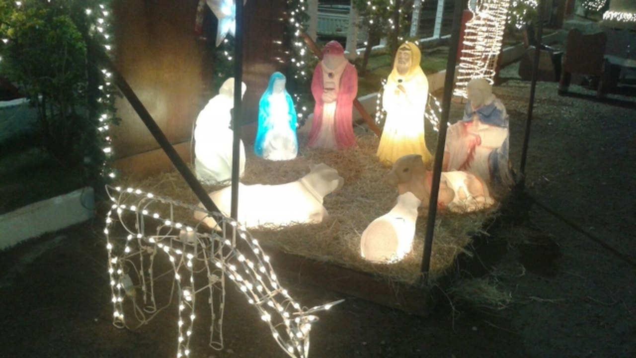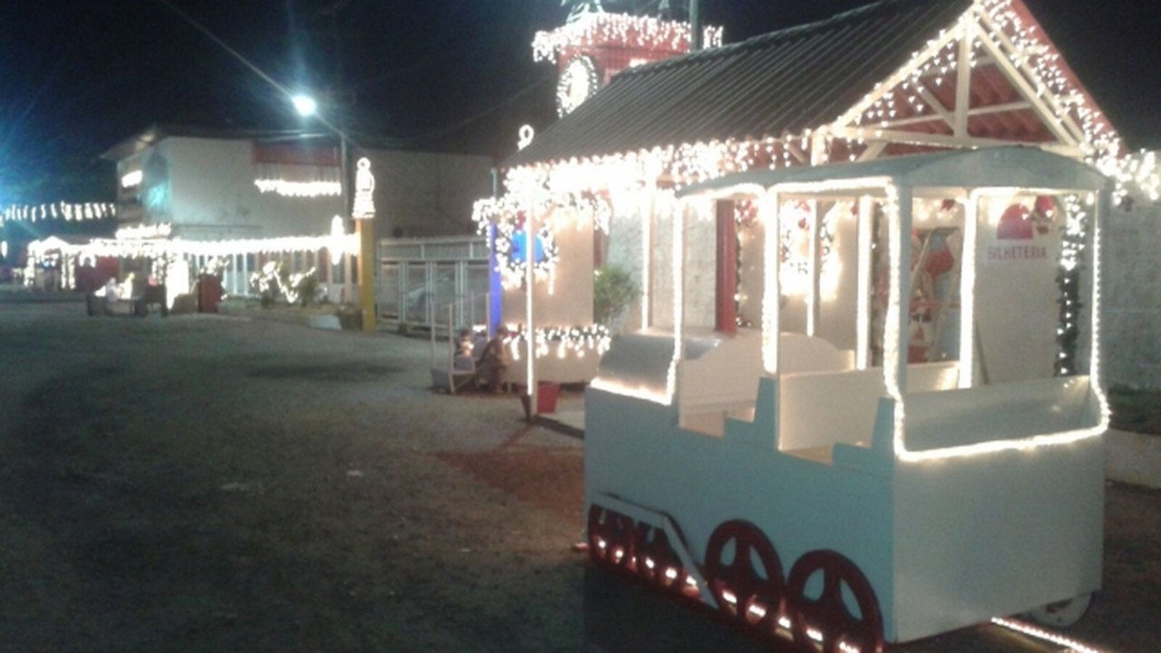 Lá também tem estação de trem, presépio com as imagens do menino Jesus, Maria e José, além dos Reis Magos e outros personagens que fazem parte do nascimento de Jesus.