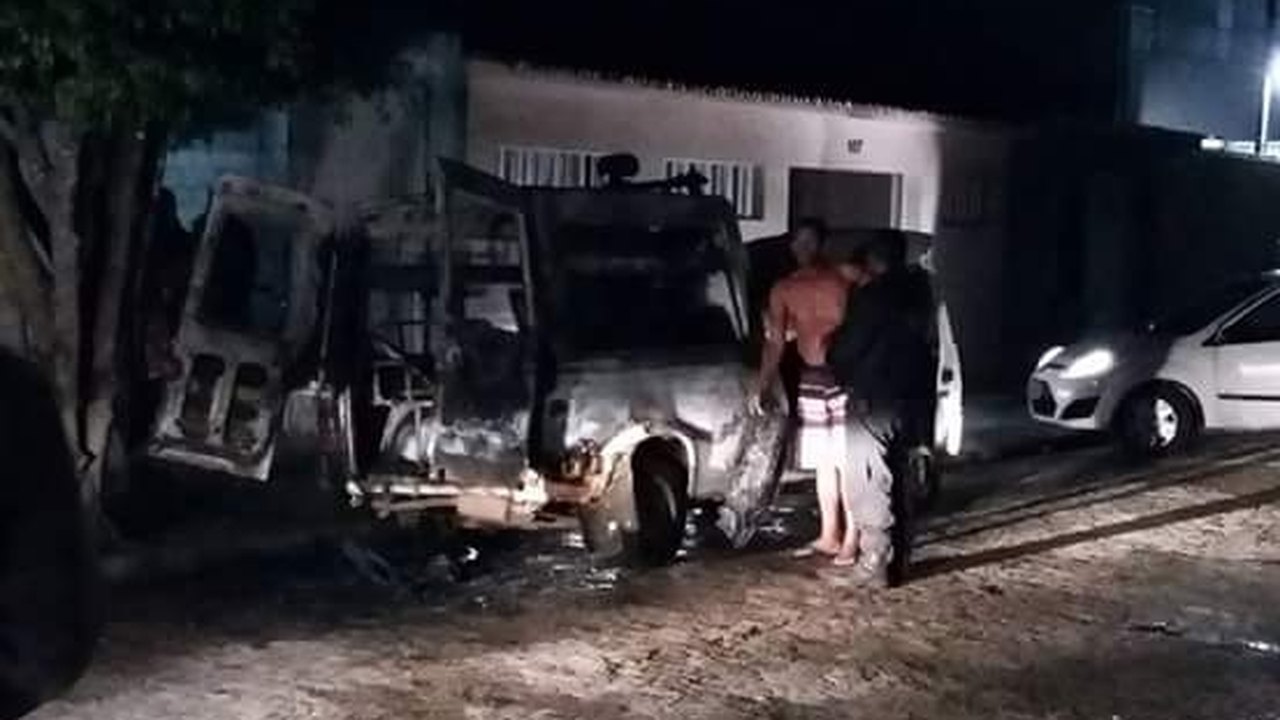 Na madrugada deste sábado (30), criminosos atearam fogo em uma ambulância que estava estacionada na porta de uma residência situada no município de Penedo, interior de Alagoas.