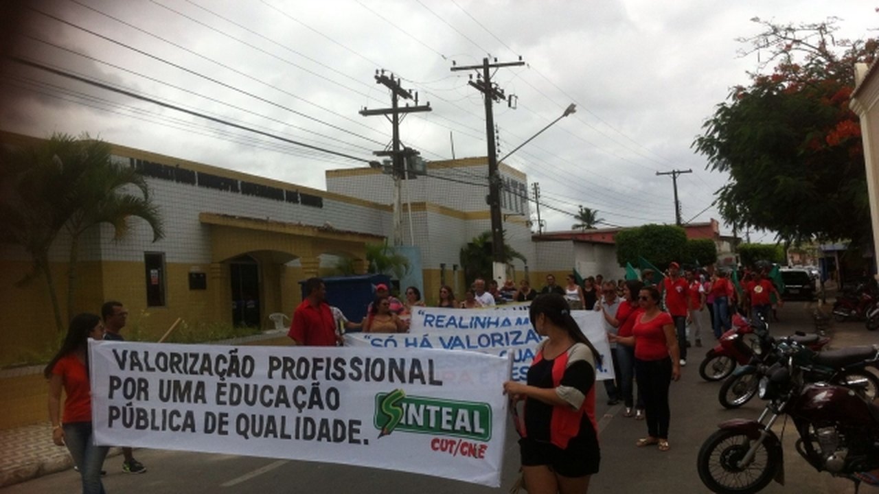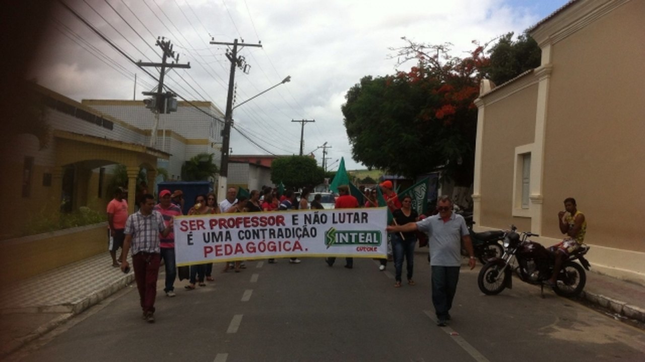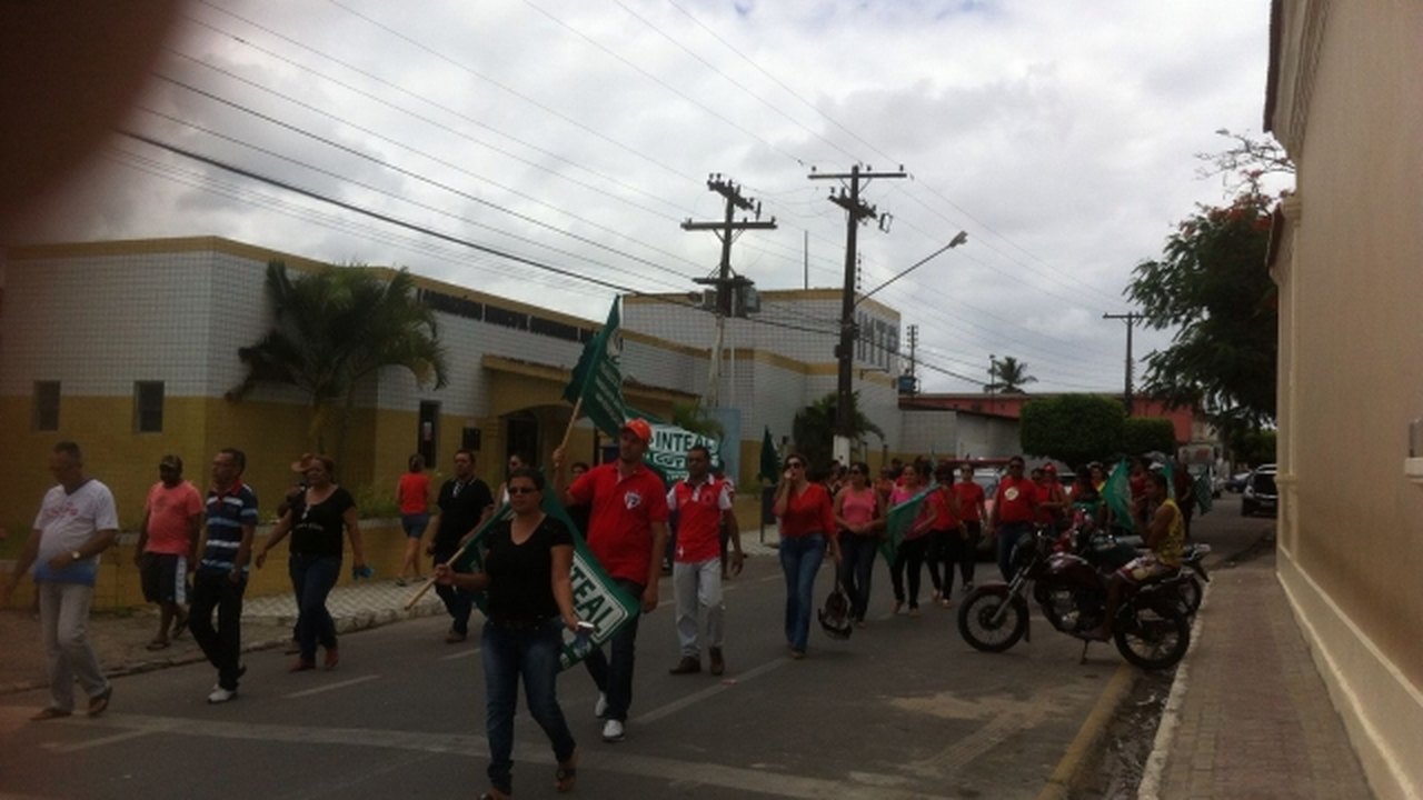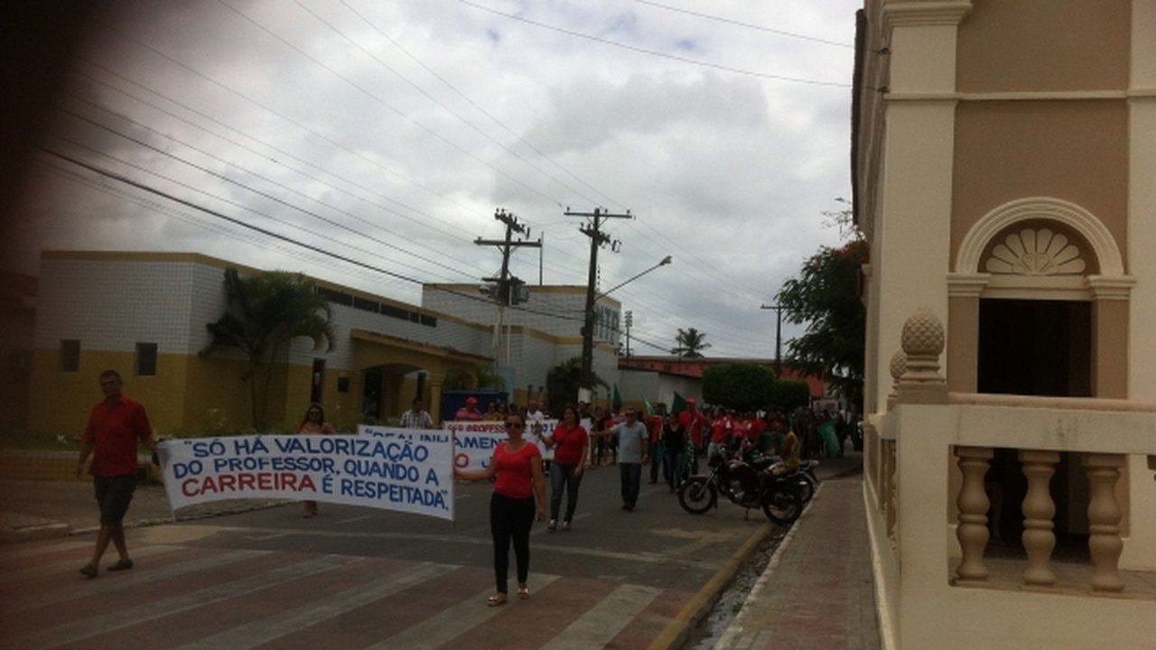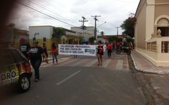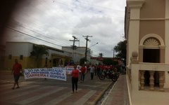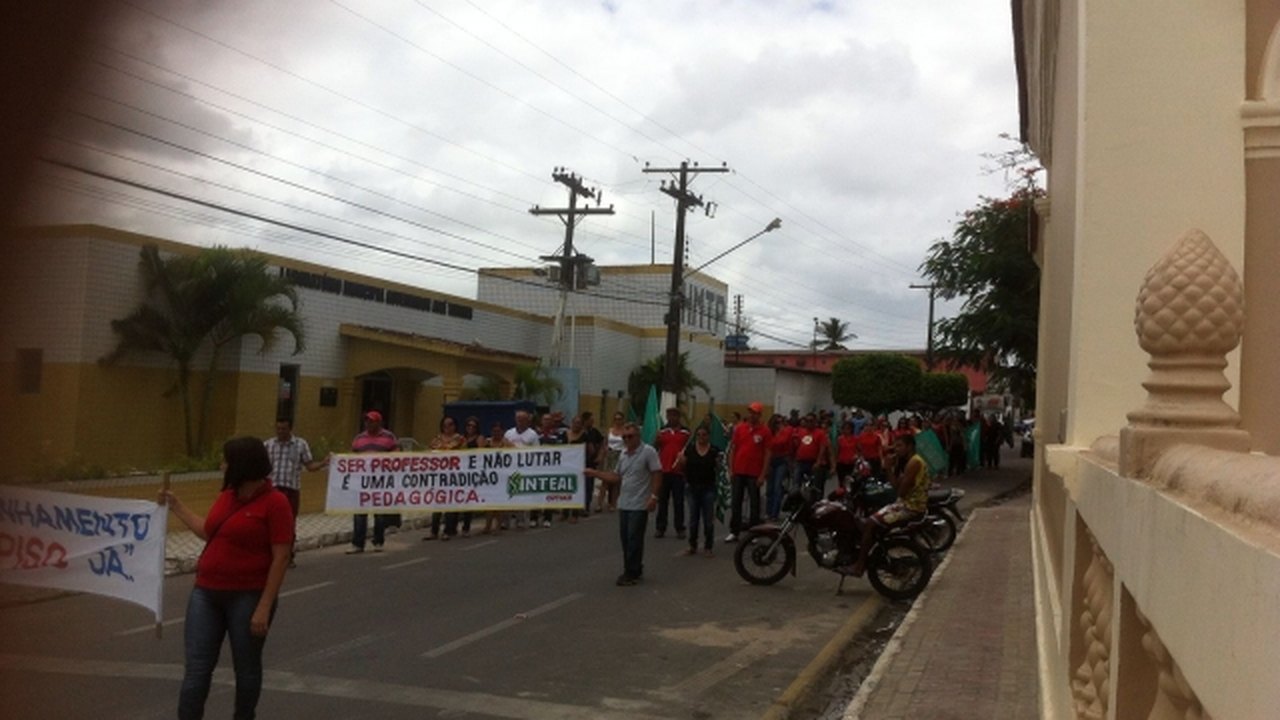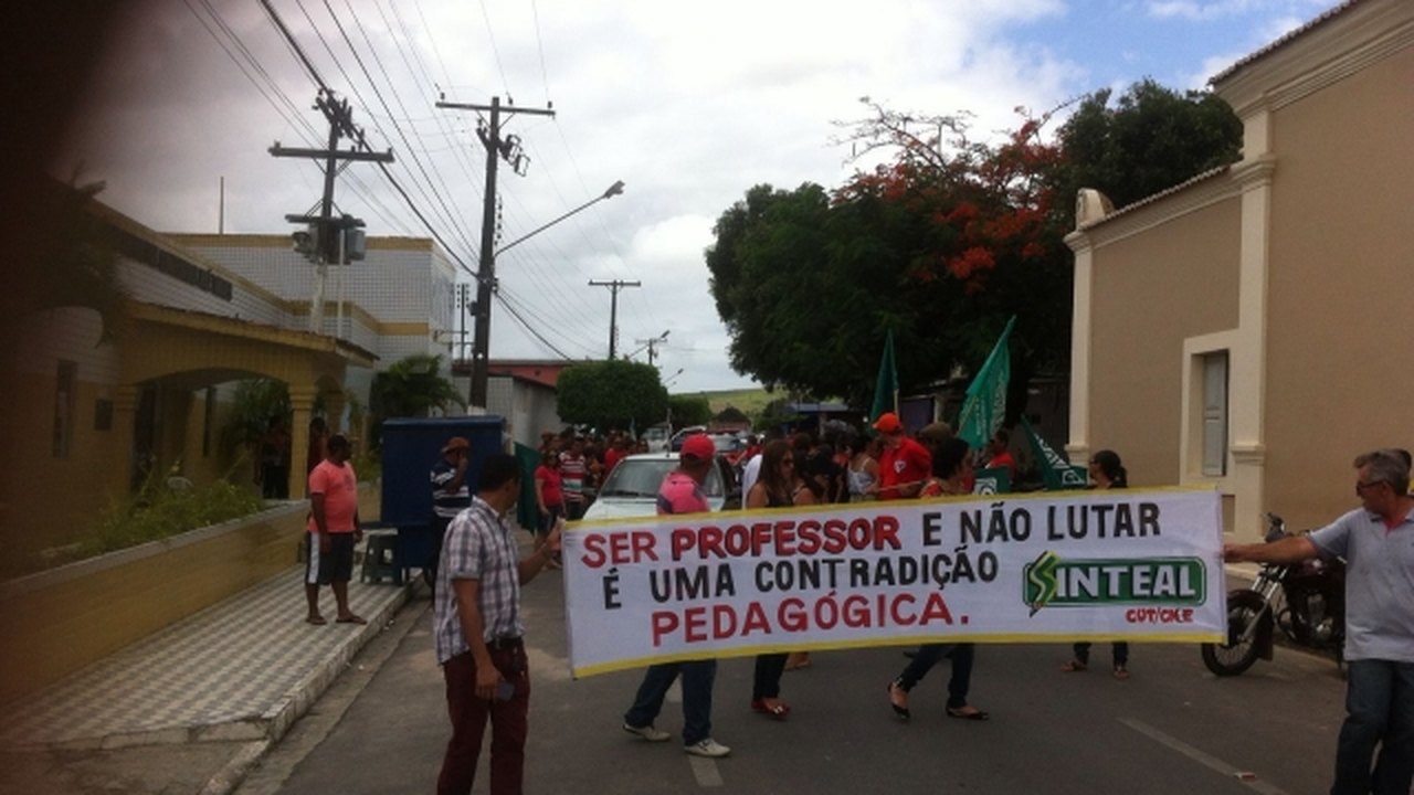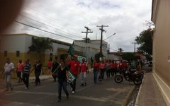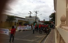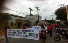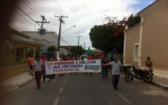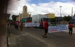 O grupo, que tem o apoio do Sindicato dos Trabalhadores da Educação de Alagoas (Sinteal), percorreu várias ruas da cidade com faixas em defesa da categoria.