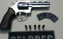 Ao fazer a abordagem a equipe do Pelopes encontrou um revólver calibre 38 na cintura da mulher, identificada como Janaína Santos, 29 anos. O motorista do veículo, Emerson Bezerra das Neves, 39 anos, também foi preso.