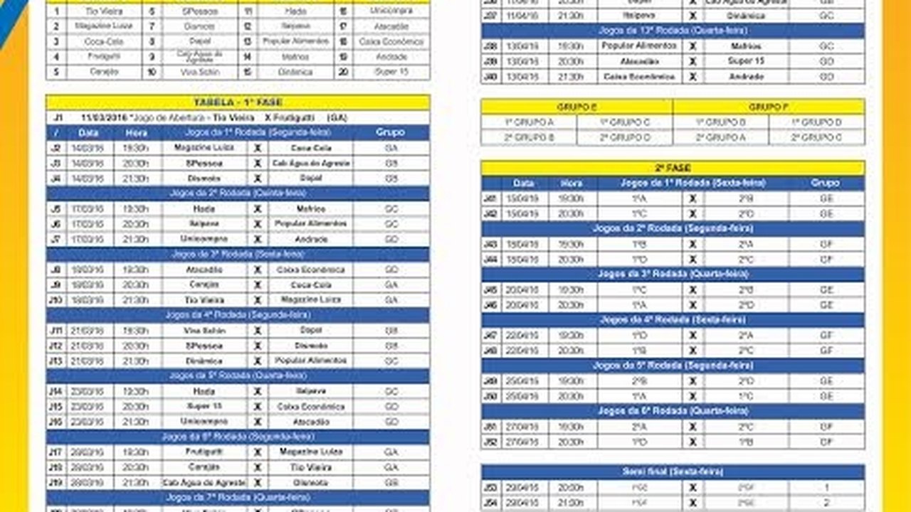 As 20 equipes dos quatro grupos vão disputar 56 jogos, durante 22 noites, esquentando a quadra do João Paulo II, às segundas, quartas e sextas-feiras, durante 13 rodadas. Apenas a segunda rodada do campeonato é que será na próxima quinta-feira (17).