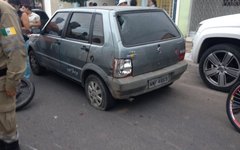 Um acidente provocado por um motociclista que colidiu com um veículo Fiat Uno, na Rua Nossa Senhora de Fátima, Centro de Arapiraca, deixou duas pessoas feridas no final da tarde desta segunda-feira (14).
