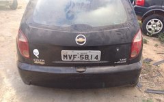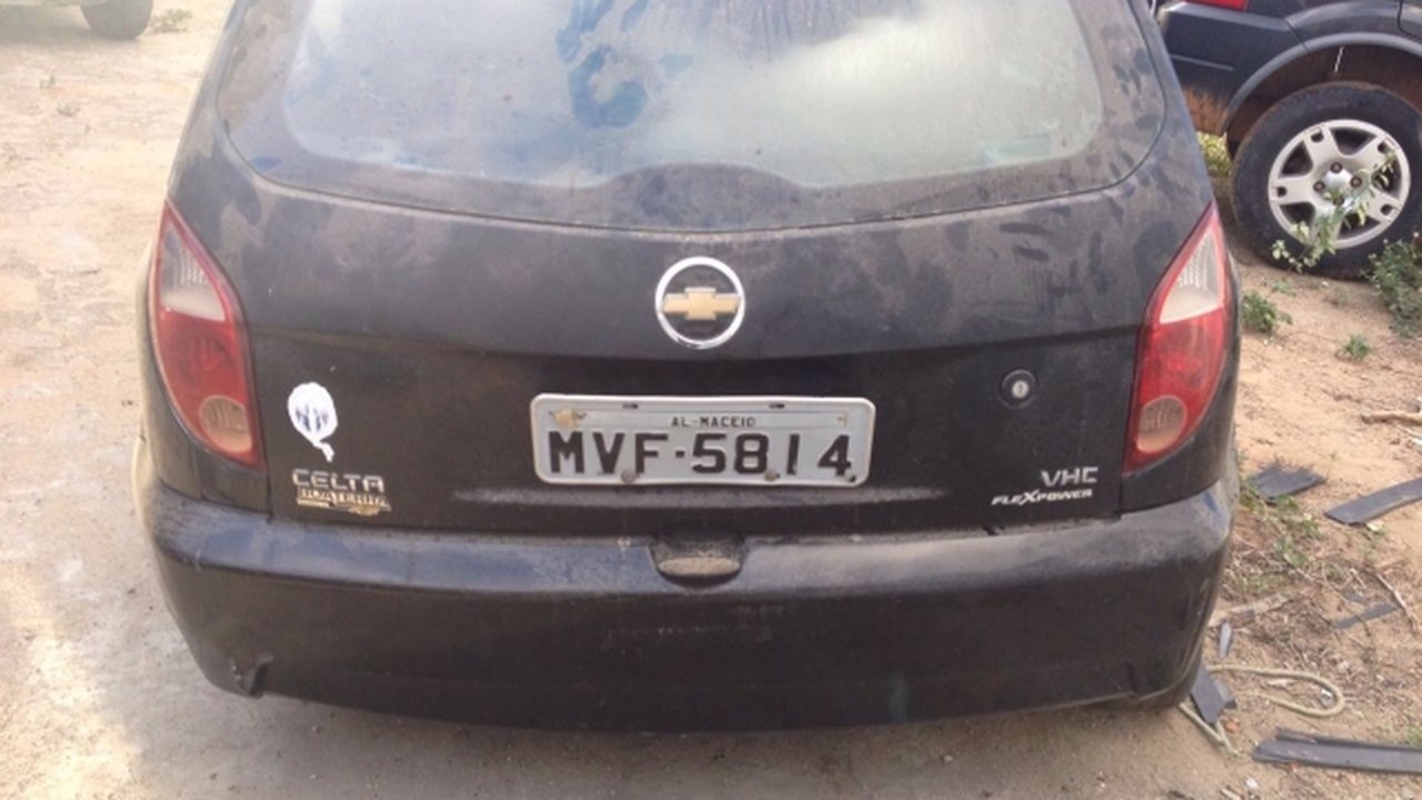 Trata-se de um celta, de cor preta, placa MVF 5814, de Maceió/AL, já sem o motor e as rodas traseiras. O proprietário não foi encontrado na oficina, nem na residência.