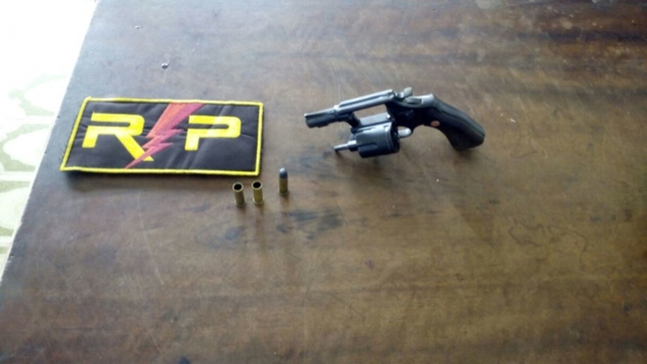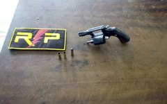 Os policiais interceptaram a dupla e apreendeu um revólver calibre 38 com três munições. Duas delas deflagradas e uma pinada, isto é, falhada.