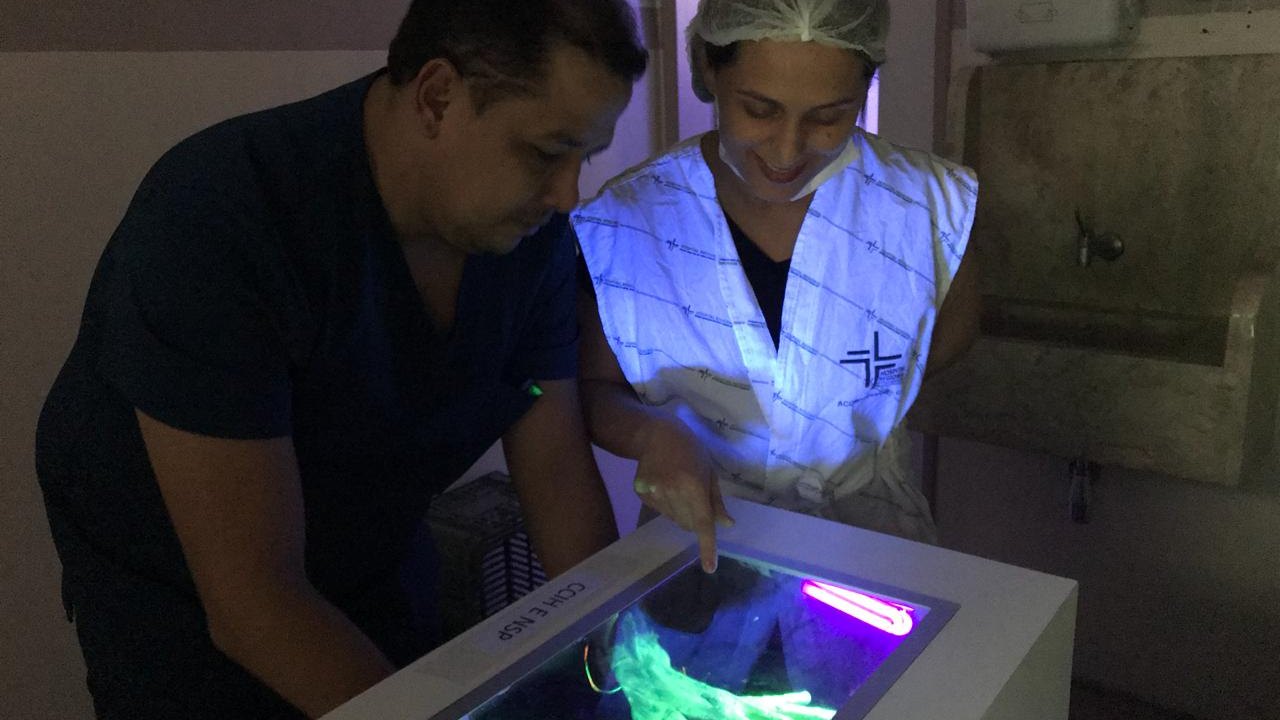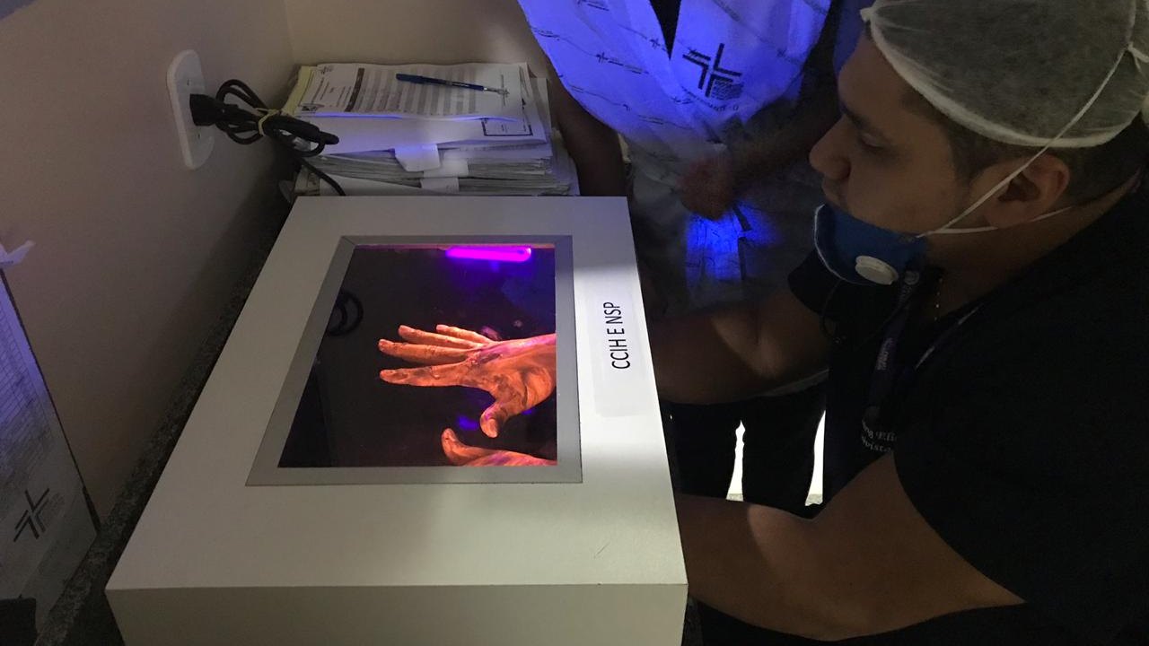 O equipamento é composto por uma caixa com luzes infravermelhas que em um ambiente escuro mostra a precisão de higienização nas mãos dos profissionais. “Foi um investimento que o nosso Hospital Regional fez pensando na saúde dos pacientes e na melhoria do atendimento”, comentou o diretor médico Ulisses Pereira.