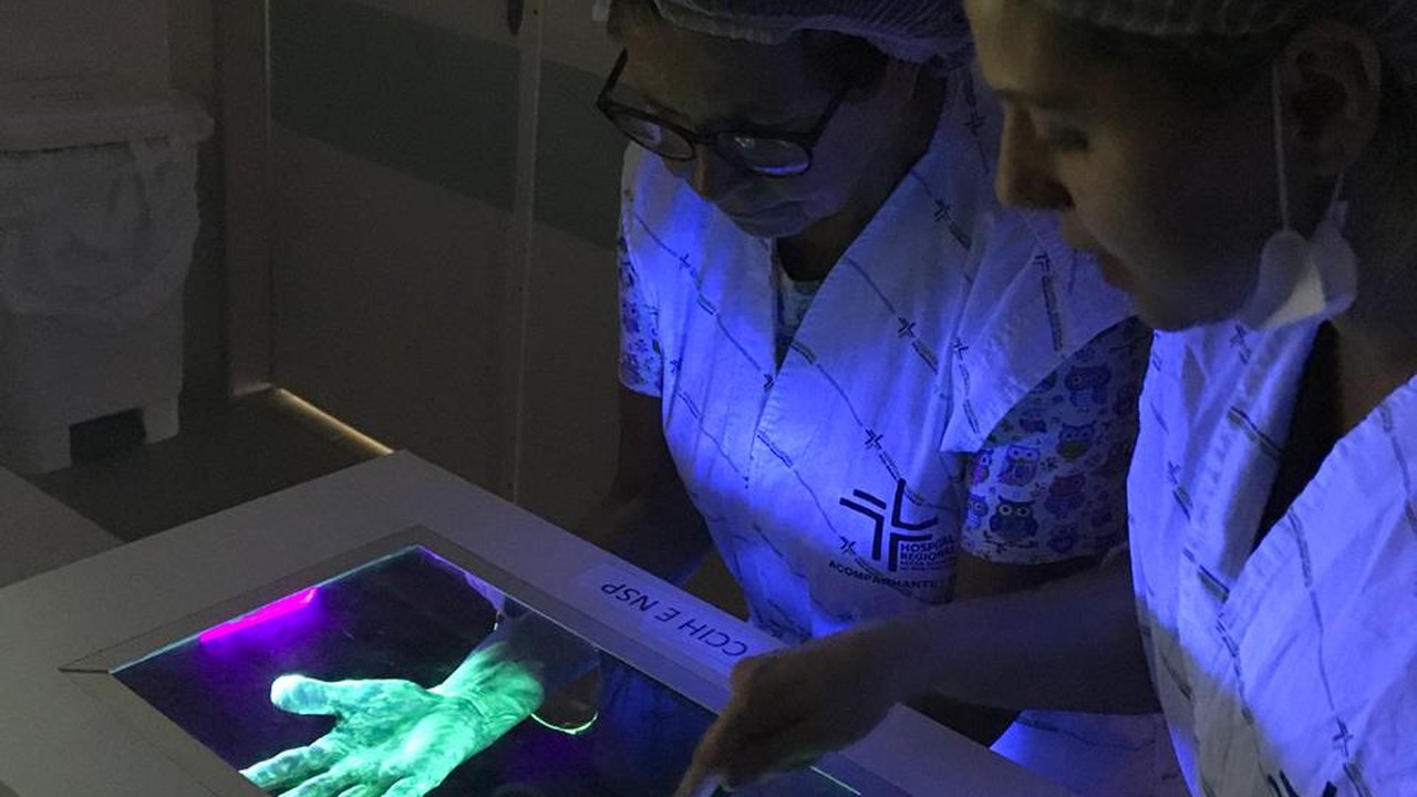 Hospital implanta equipamento para sensibilização da higienização básica da mão