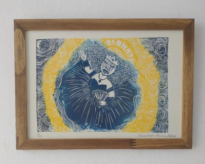 Xilogravura de Oxum: Oxum é uma orixá, rainha da água doce, dona dos rios e cachoeiras, cultuada nas religiões de matrizes africanas do candomblé e na umbanda