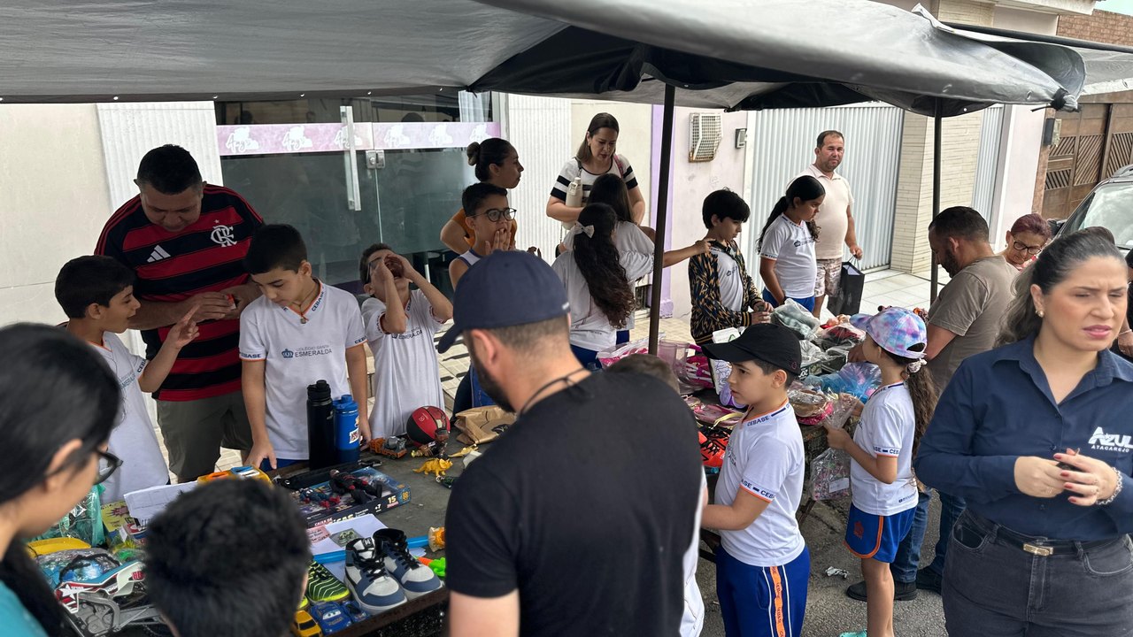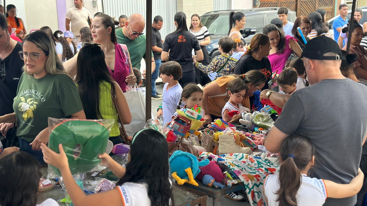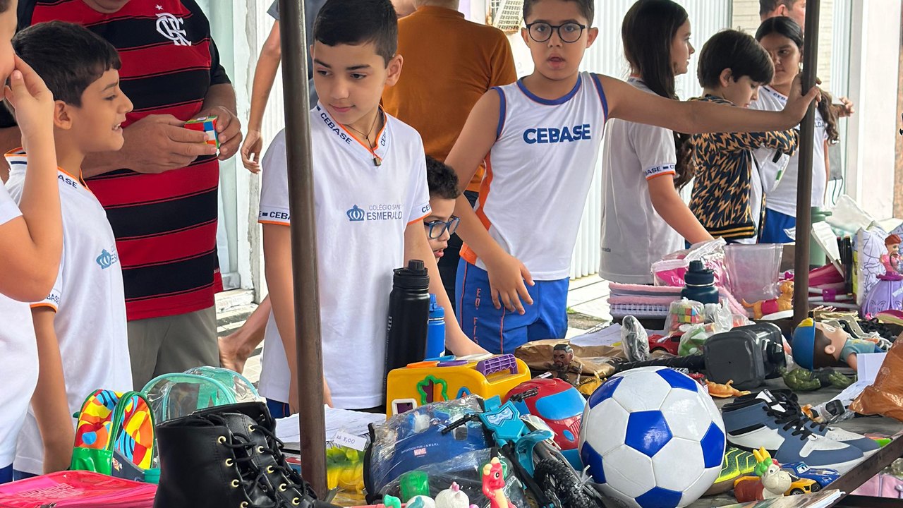 Durante o evento, os próprios alunos montam suas “lojinhas”, oferecem produtos usados em bom estado — como brinquedos, livros e roupas — e aprendem na prática a lidar com conceitos como precificação, desconto e troco.