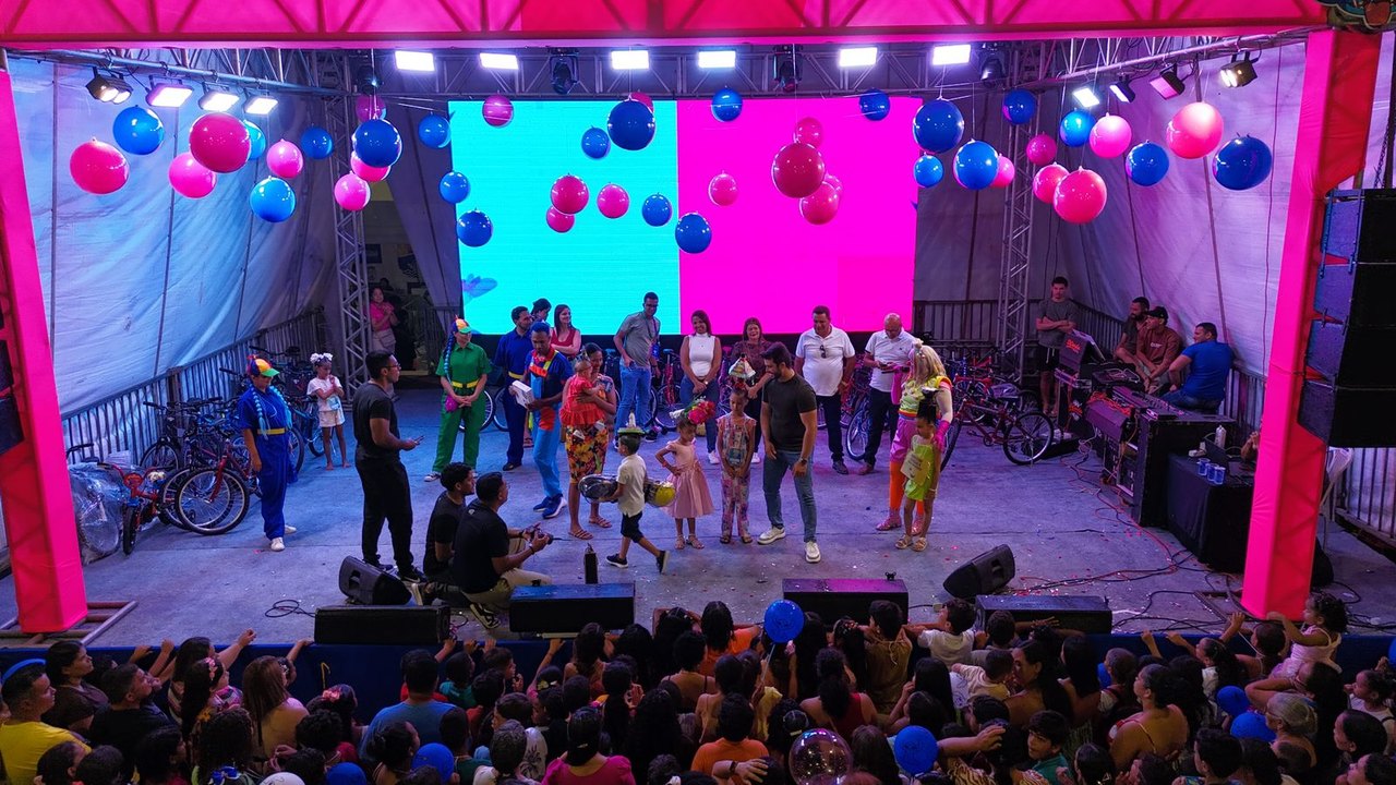 Um dos momentos mais esperados foi o sorteio de mais de 40 prêmios, incluindo bicicletas, skates e patinete, que agitou o público e premiou dezenas de crianças colegienses.