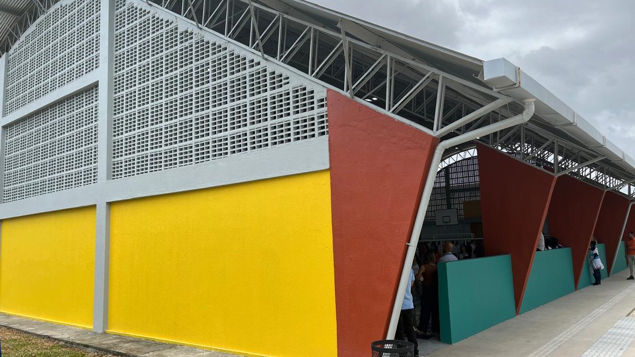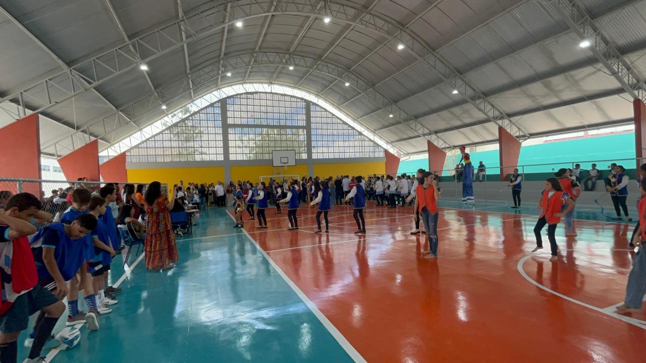 O ginásio passou por uma revitalização completa, transformando-se em um espaço moderno, acessível e acolhedor. Entre as intervenções, destacam-se a recuperação integral da cobertura, garantindo segurança e conforto térmico; a pintura harmonizada com as cores da escola, reforçando a identidade visual do complexo; e a modernização dos vestiários, agora totalmente acessíveis, com adequação dos sanitários e melhorias nas instalações hidráulicas e elétricas.
