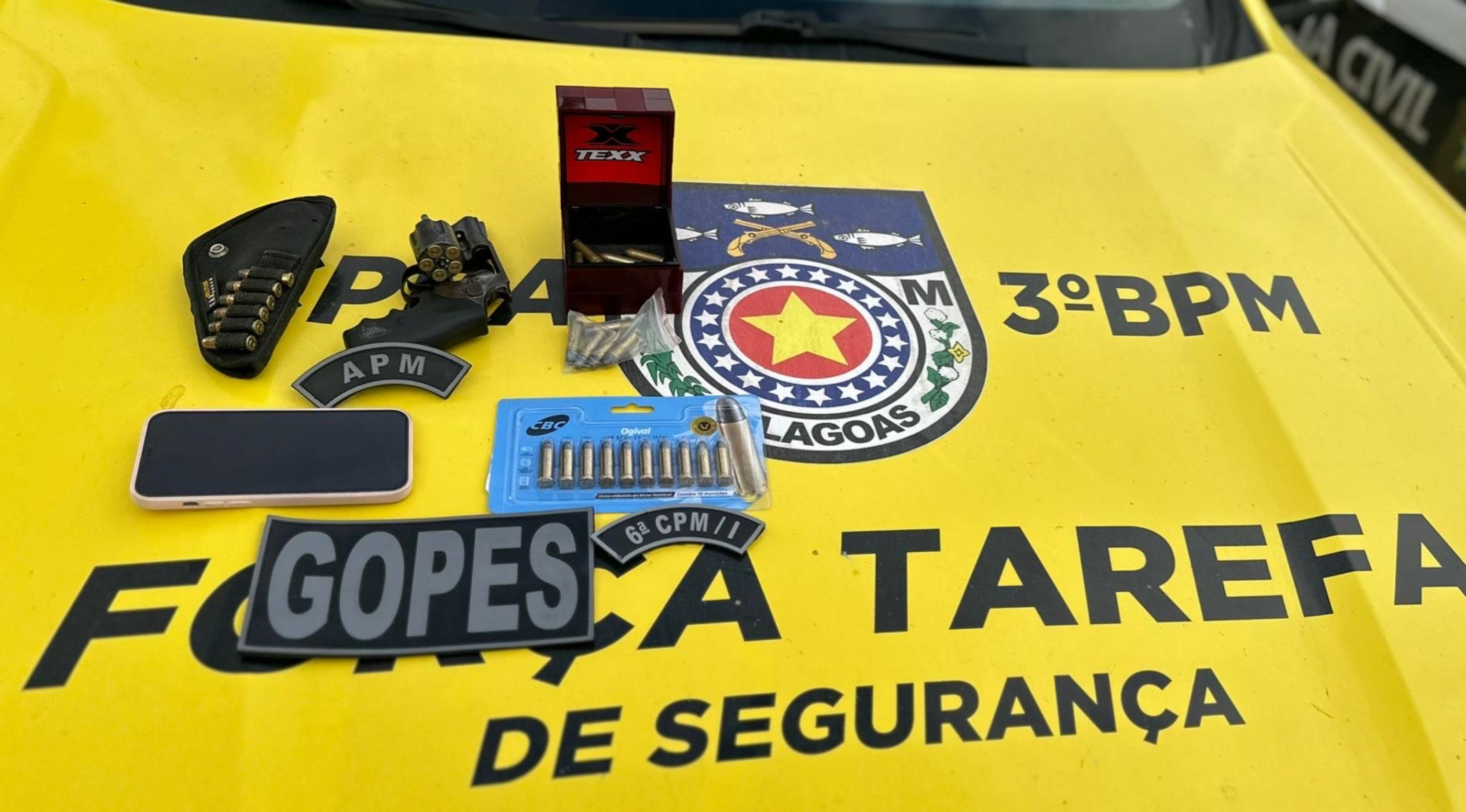 A Polícia Militar deflagrou uma operação de combate ao crime organizado no município de Arapiraca, Agreste alagoano. As ações acontecem desde as primeiras horas desta sexta-feira (21) e já resultaram nas apreensões de uma arma de fogo e porções de maconha (65g tipo balinha e 215g em tablete), além de materiais utilizados para fracionamento e venda de drogas, como duas balanças de precisão, máquina de cartão e papel filme.